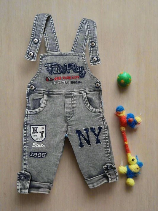 Stylish Children's Dungaree Gray Navy Blue with Fun Details
