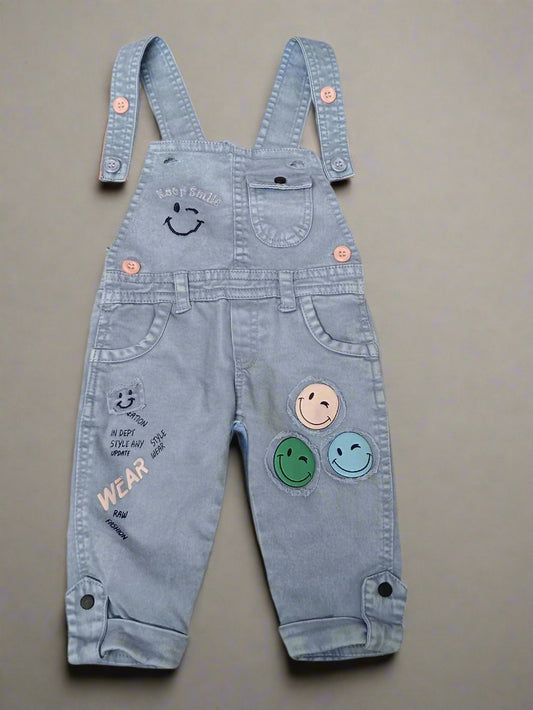 Adorable Denim Dungaree Outfit for Kids with Smiley Faces
