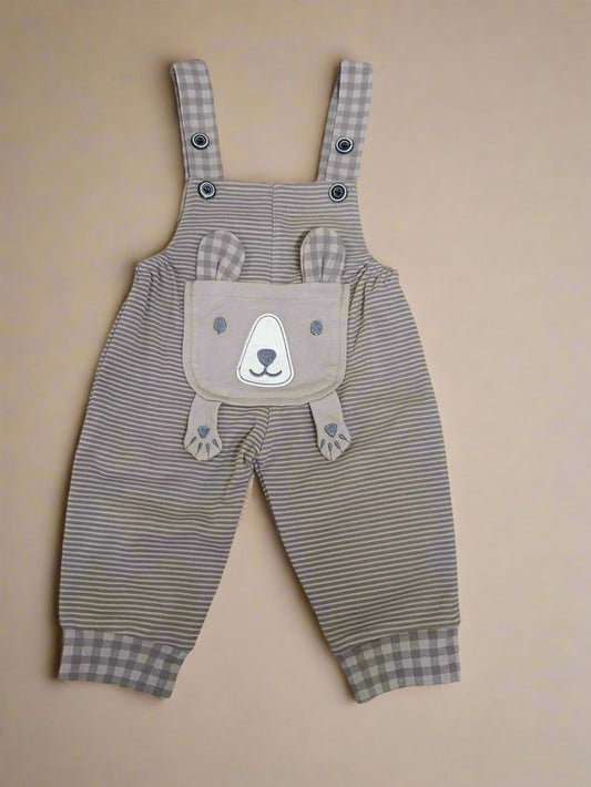 Adorable Striped Baby Overalls Dungaree with Bear Design
