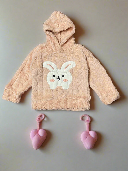 Light Pink Fleece Rabbit Face Hoodie Set and Pajama Set - Pink Rabbit Hoodie Set