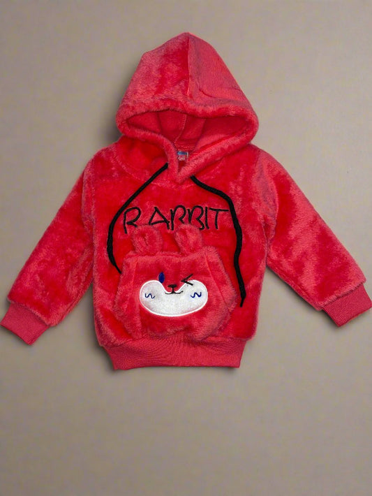 Adorable Red Rabbit Winter Hoodie and Pants Set for Kids