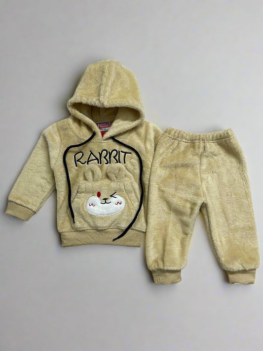 Cute Beige Rabbit Print Hoodie Pants Set for Winter