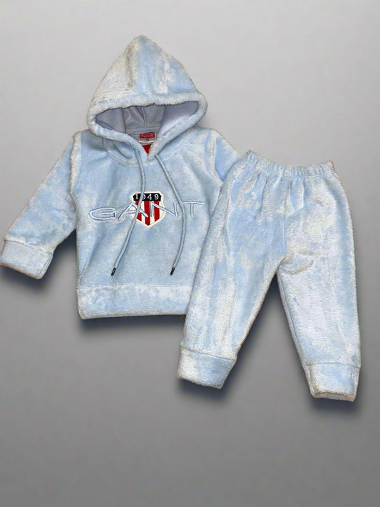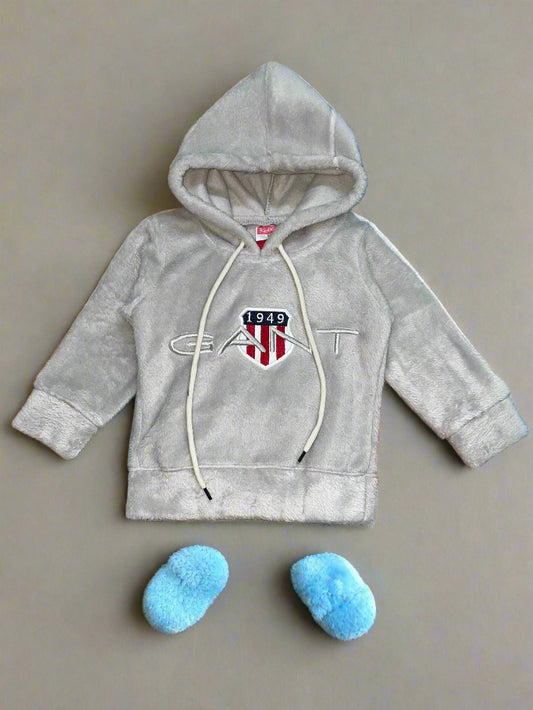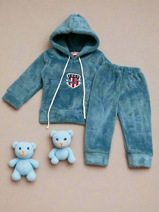 Adorable Brown Fleece hoodie Children's Clothing Set with Bear Design
