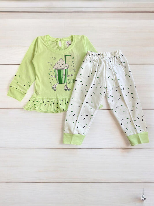 Adorable Cupcake-Themed Girls Pajama Set with Full Sleeve Top and Bottom