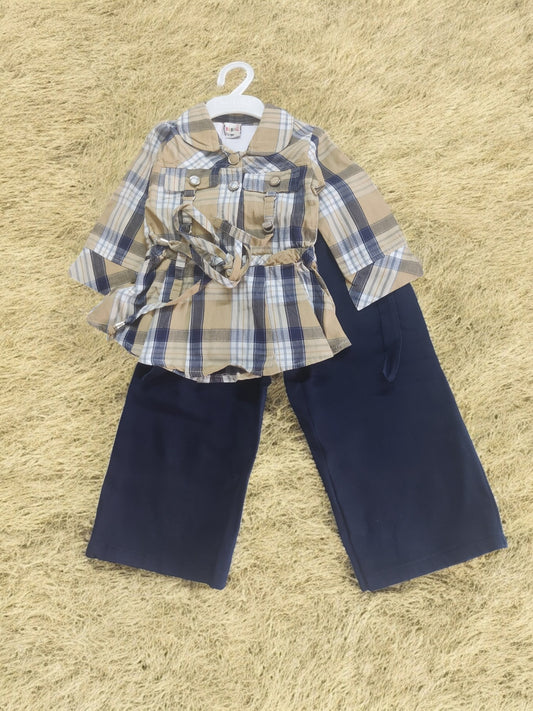 Stylish Plaid Top Girls and Dark Blue Pants Outfit
