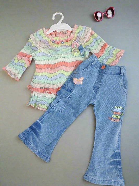 Charming Girls Top and Jeans Set - Ideal for All Occasions