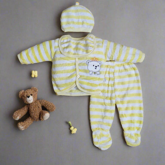 Adorable Light Yellow New Born Set With Two Pajamas, Cap and Bib