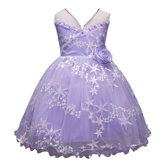 Hopscotch Girl's Fit And Flare Knee Length Sleeveless Star Embroidered Party Dress