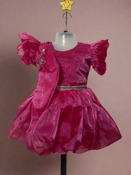 Charming Onion Colour Dress for Girls with Shimmering Fabric