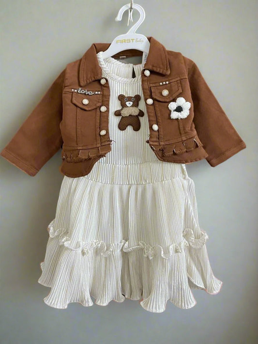 Adorable Baby Girl Dress with Jacket and Teddy Bear Design - Cute Toddler Outfit