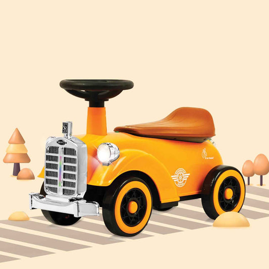 R for Rabbit Speedster Royal Ride on Car for Kids, Baby Vintage Looks Stylish Ride Car with LED Light & Horn Boys Girls Age 1-4 Years, Weight Capacity Up to 20Kgs (Orange Brown)