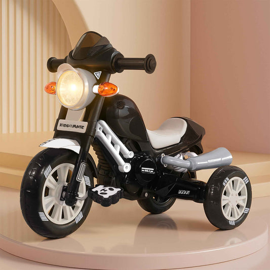 Kidsmate Turbo Bike Pedal Tricycle for Kids | Musical Horn & Lights | Ages 3-6 | Black-White
