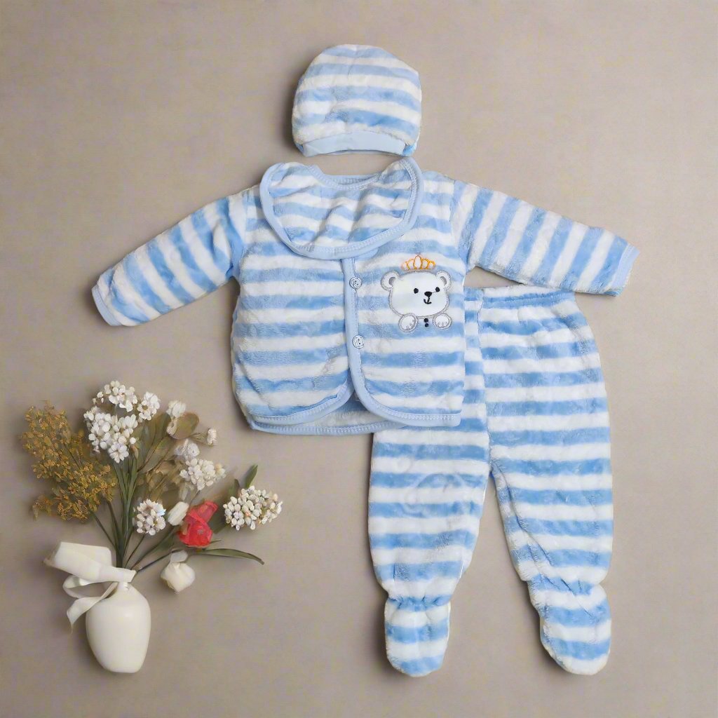 Light Blue Newborn Set with Two Pajamas, Cap, and Bib - Adorable Outfit for Infants