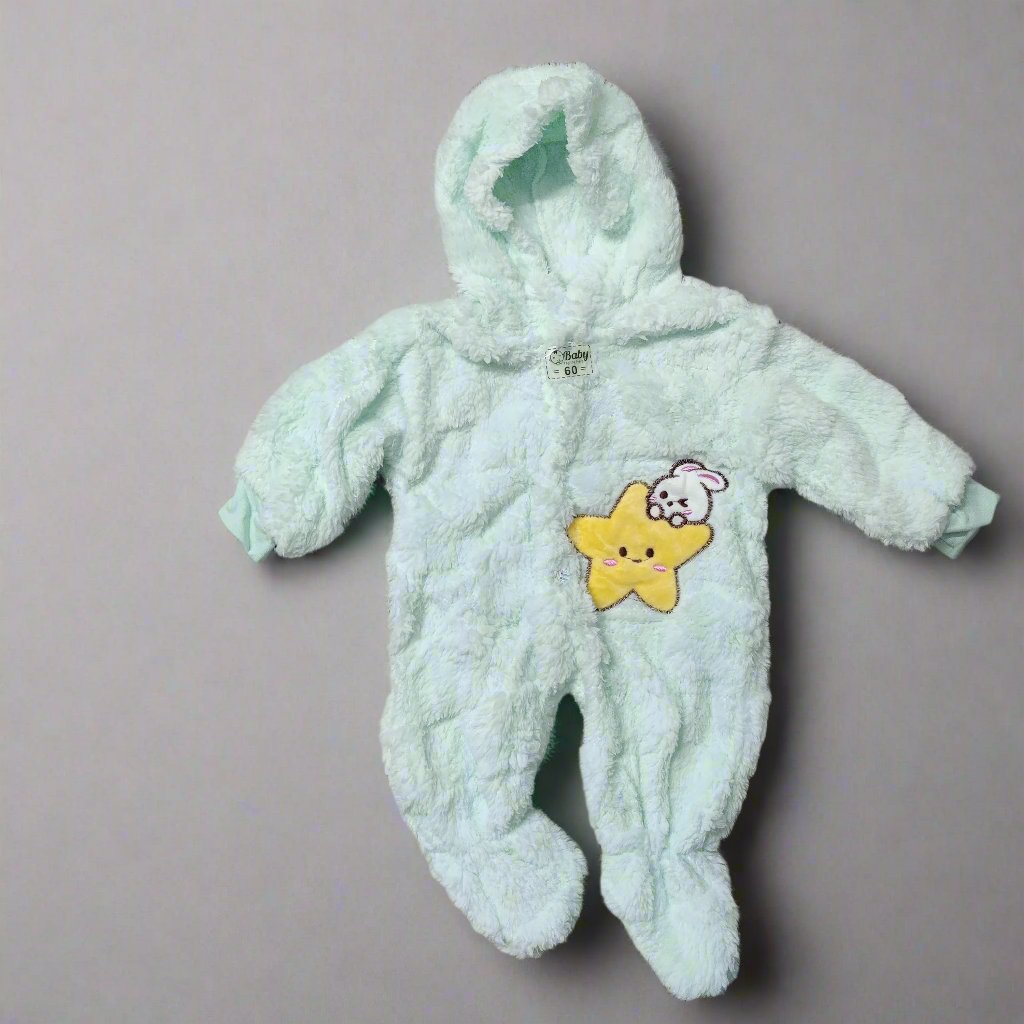 Wrap your little one in comfort and cuteness with our Light Green Baby Hooded Onesie made from soft, fur-like fabric. This charming onesie features an attached hood, providing extra warmth and coziness during outings on cooler days.