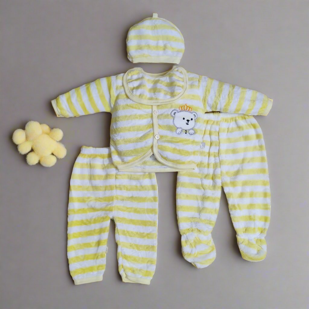 Adorable Light Yellow New Born Set With Two Pajamas, Cap and Bib