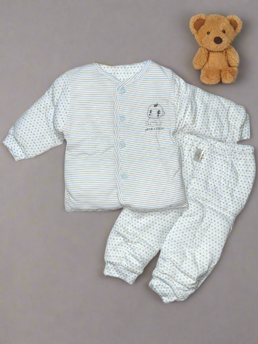 In summary, the White and Blue Baby Clothing Set for 9-12 months is an excellent blend of comfort, style, durability, and safety. It's the perfect choice for parents who want to dress their little ones in outfits that not only look great but also stand the test of time. Whether your baby is exploring the world around them or simply enjoying a snuggle with you, this clothing set will ensure they do so in style and comfort.