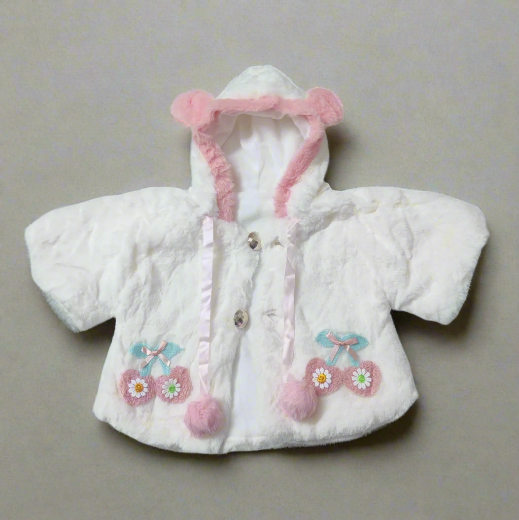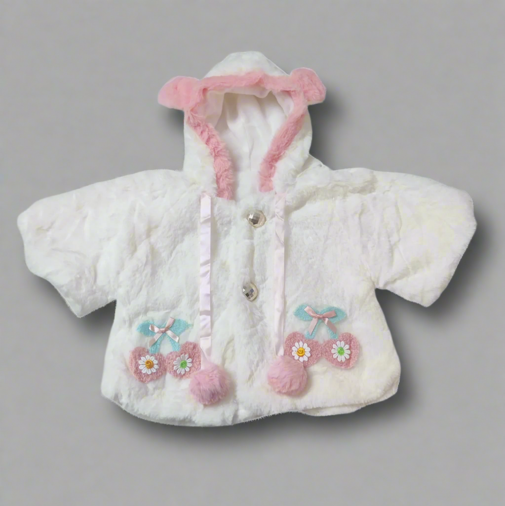 Crafted from soft plush fabric, the jacket offers warmth and comfort, perfect for chilly days. Its enchanting pink and white color scheme features decorative flowers and bows, bringing a touch of whimsy that children adore.