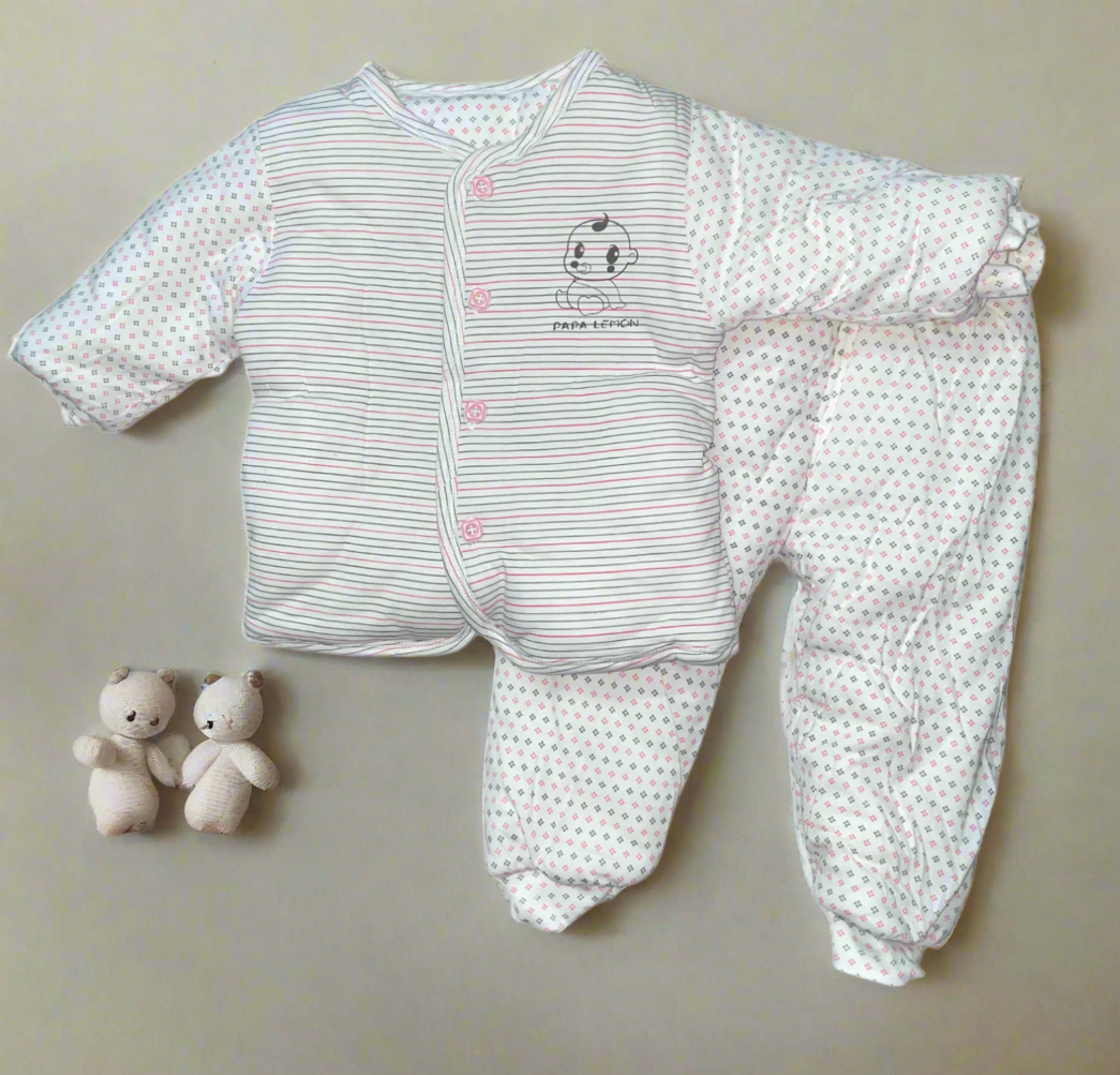 The durability of our White and Pink Baby Clothing Set means that it can be passed down to siblings or shared among friends, making it a sustainable choice in baby fashion. The timeless design ensures it remains in style, regardless of current trends, this set will always be a cherished garment in your child's wardrobe.