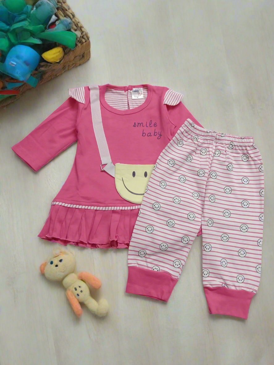 Introducing our Charming Baby Top and Pajama Set with Elegant Purse, the ultimate baby top and pajama set designed to provide unparalleled comfort and style for your little one. Crafted from soft, breathable materials, this set ensures your baby stays cozy throughout the night. The top features an adorable design that combines style and ease, making it perfect for both lounging and playtime.