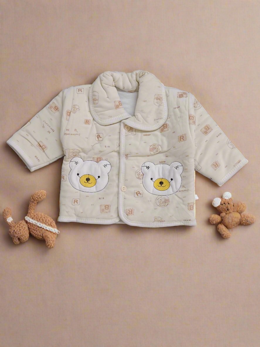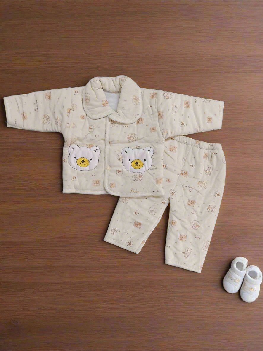 For those caring for newborns in cooler weather, consider layering the Beige Bear Baby Clothing Set with a warm jacket or blanket. The neutral beige color complements a variety of outerwear options, making it a flexible addition to any baby's wardrobe.