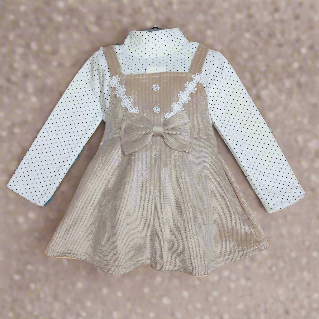 This delightful dress will make your little one the center of attention at any gathering. Featuring a stunning golden fabric complemented by a white top embellished with playful black polka dots, this outfit is sure to capture the hearts of everyone around.