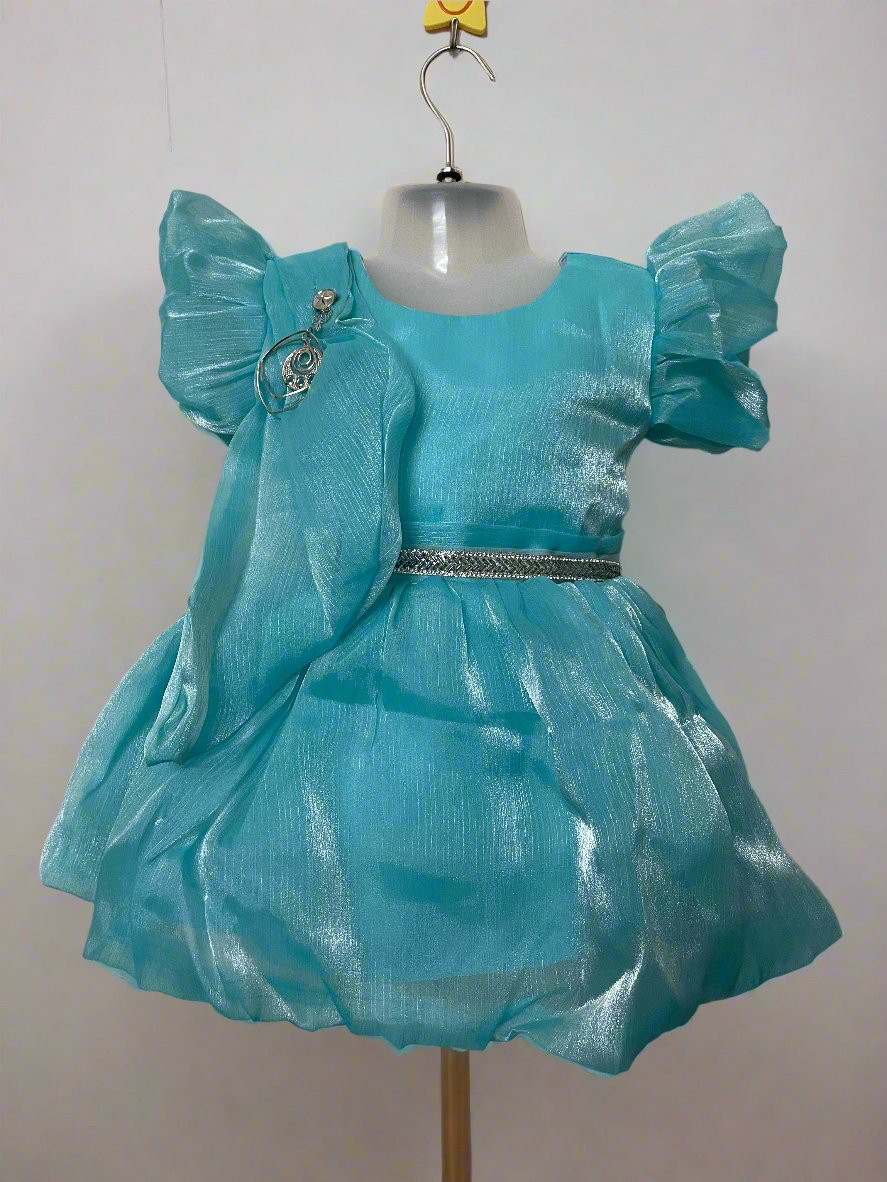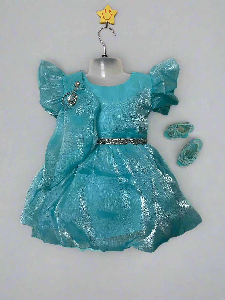 Sky Blue Girls Dress with Shimmering Fabric for Girls