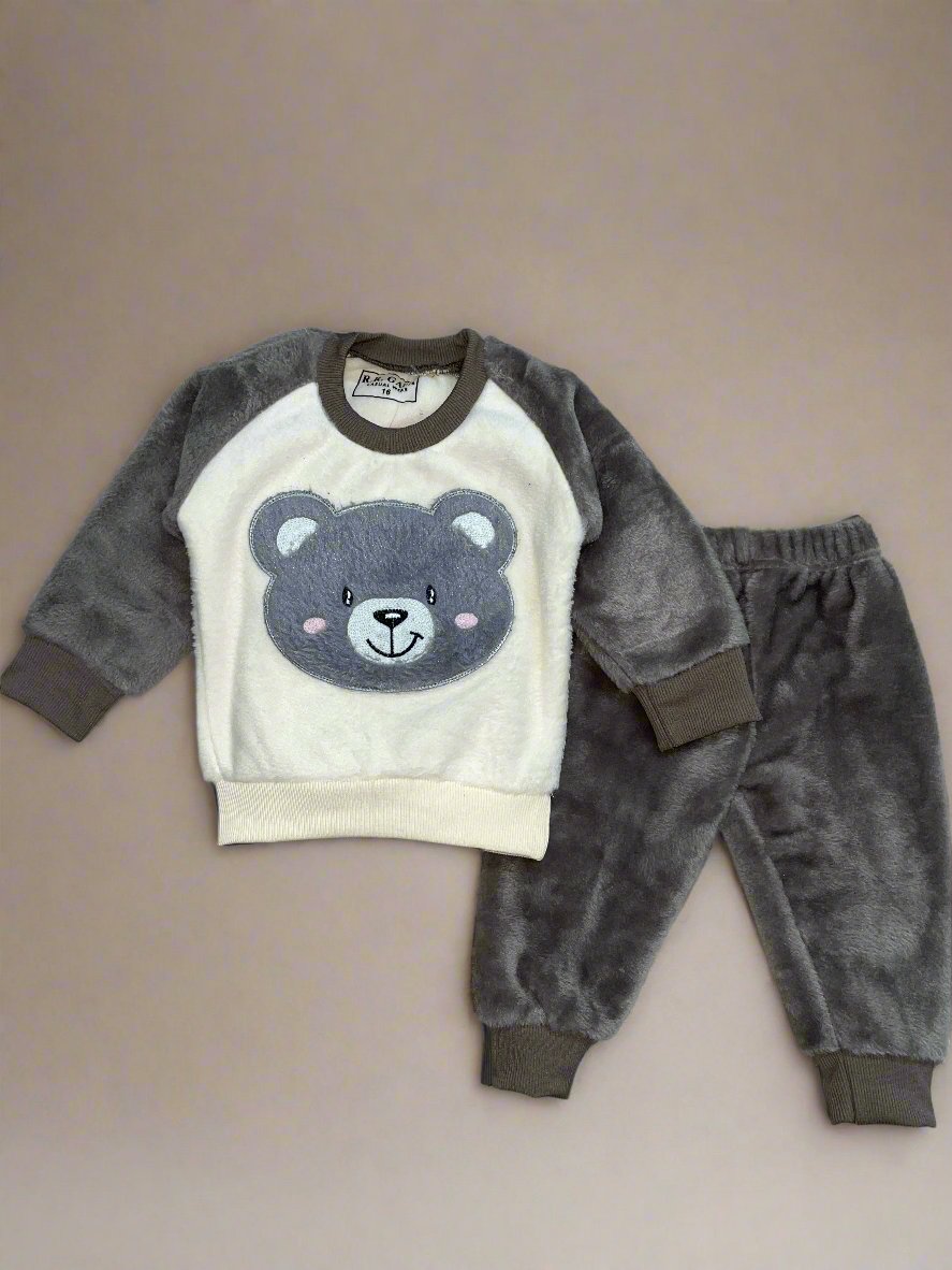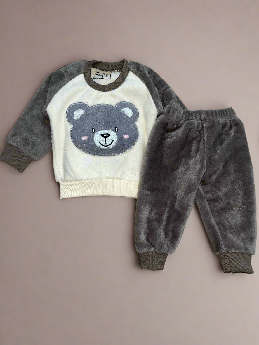 Elevate your child's wardrobe with this adorable bear-themed clothing set that marries comfort and cuteness. Tailored from soft fleece, this outfit ensures your little one stays warm and cozy during playtime or lounging.