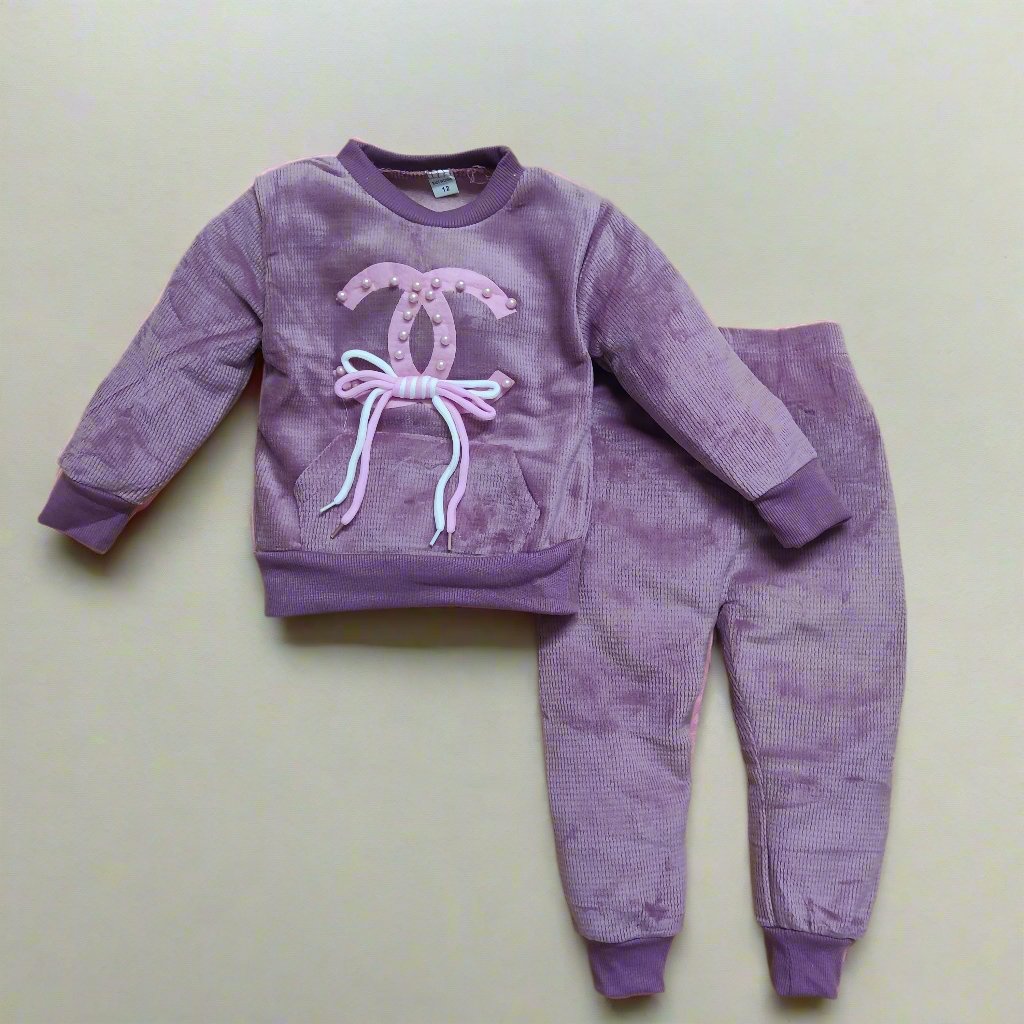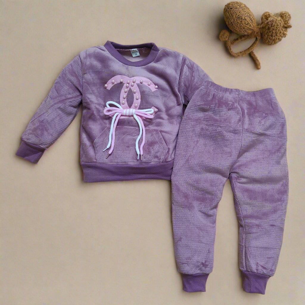 Cozy Purple Velvet Winter Outfit for Kids