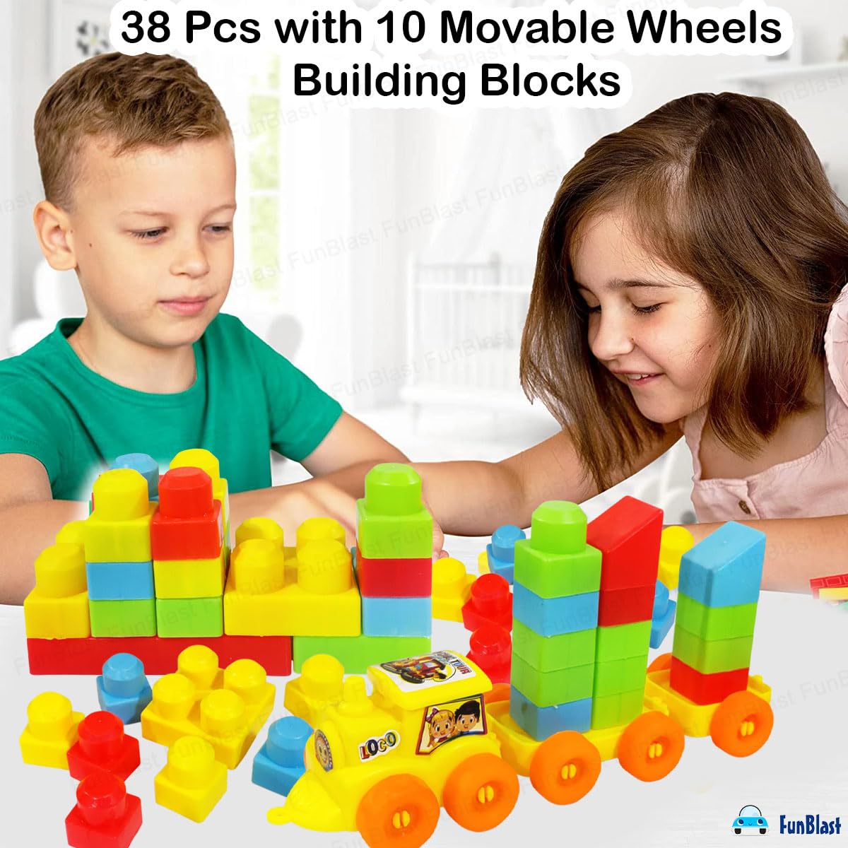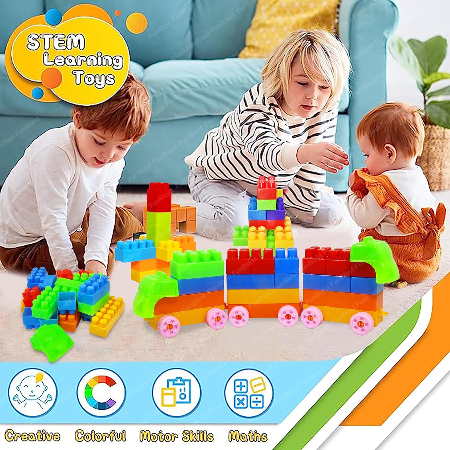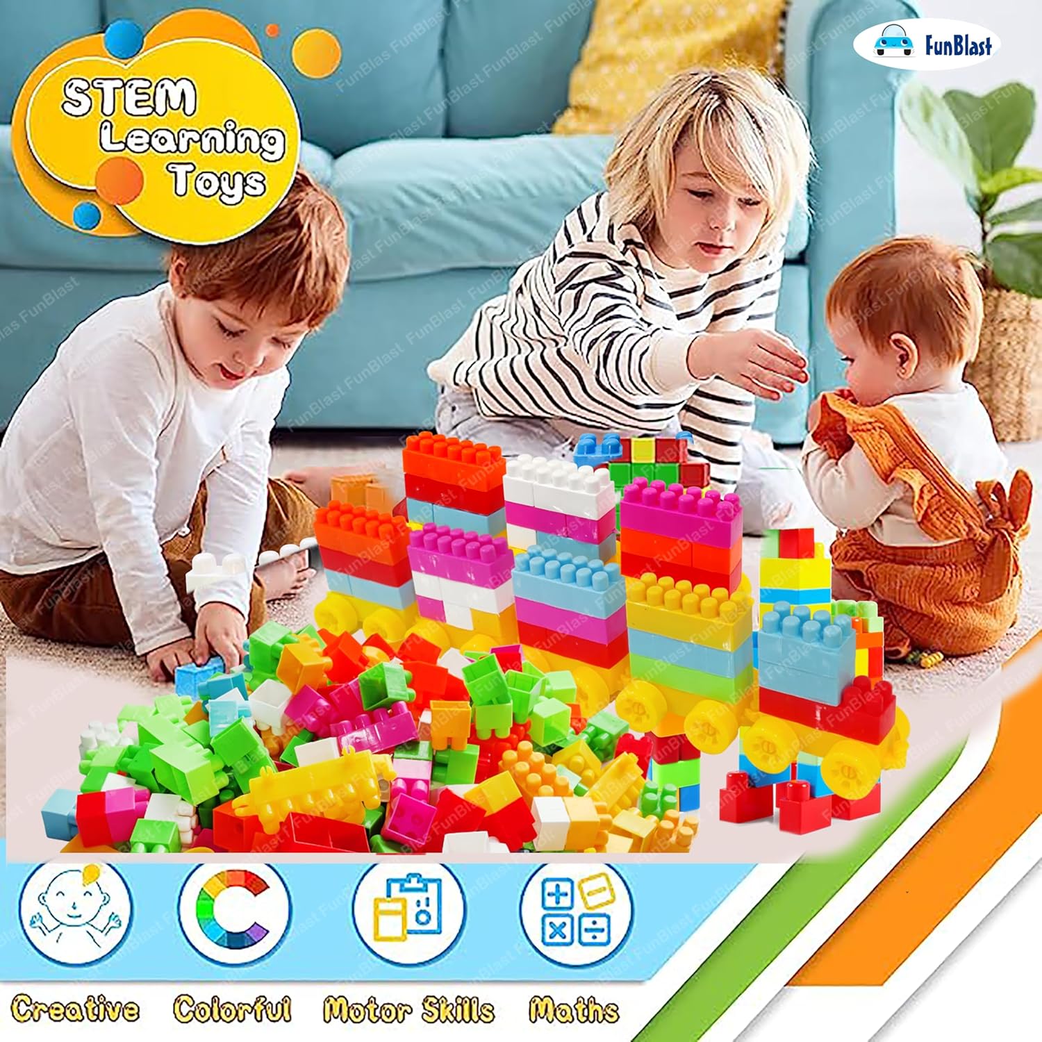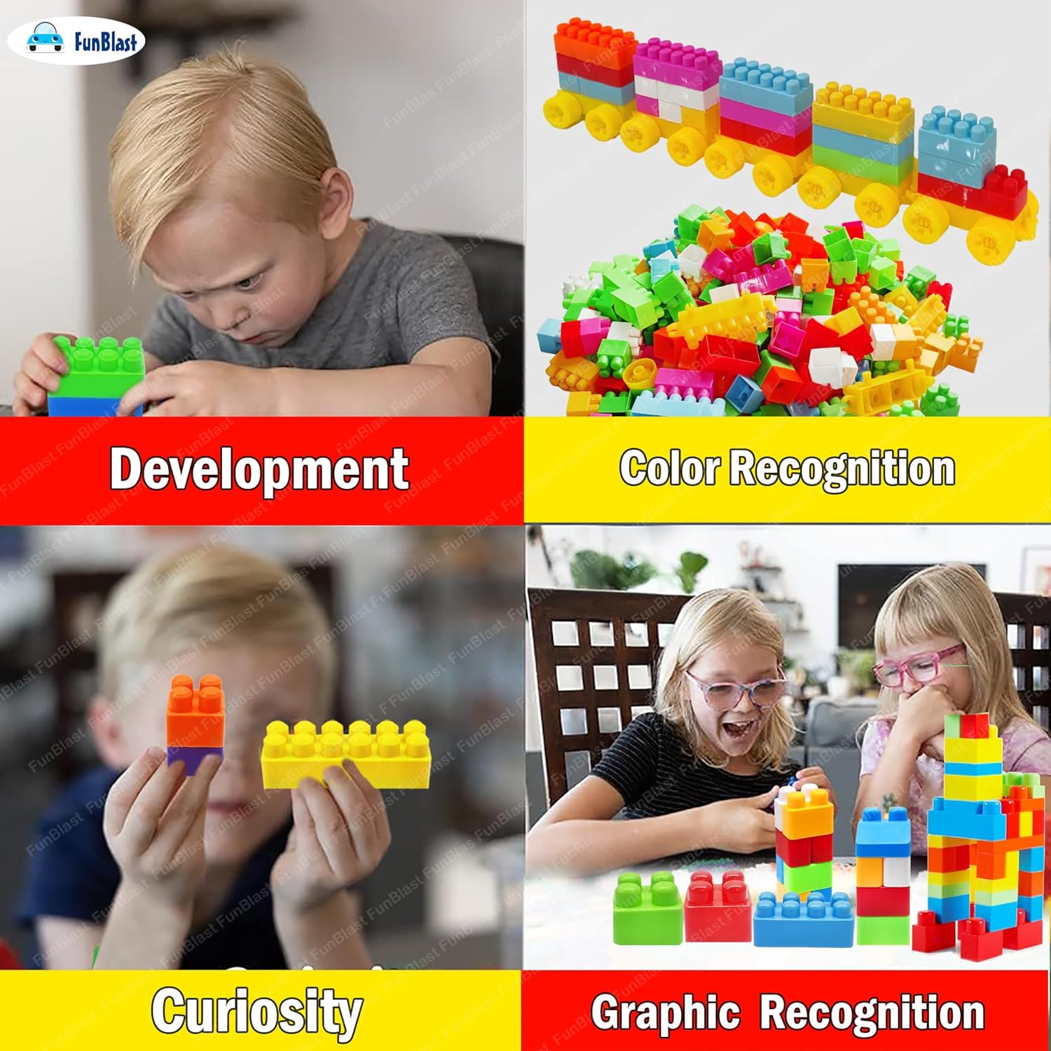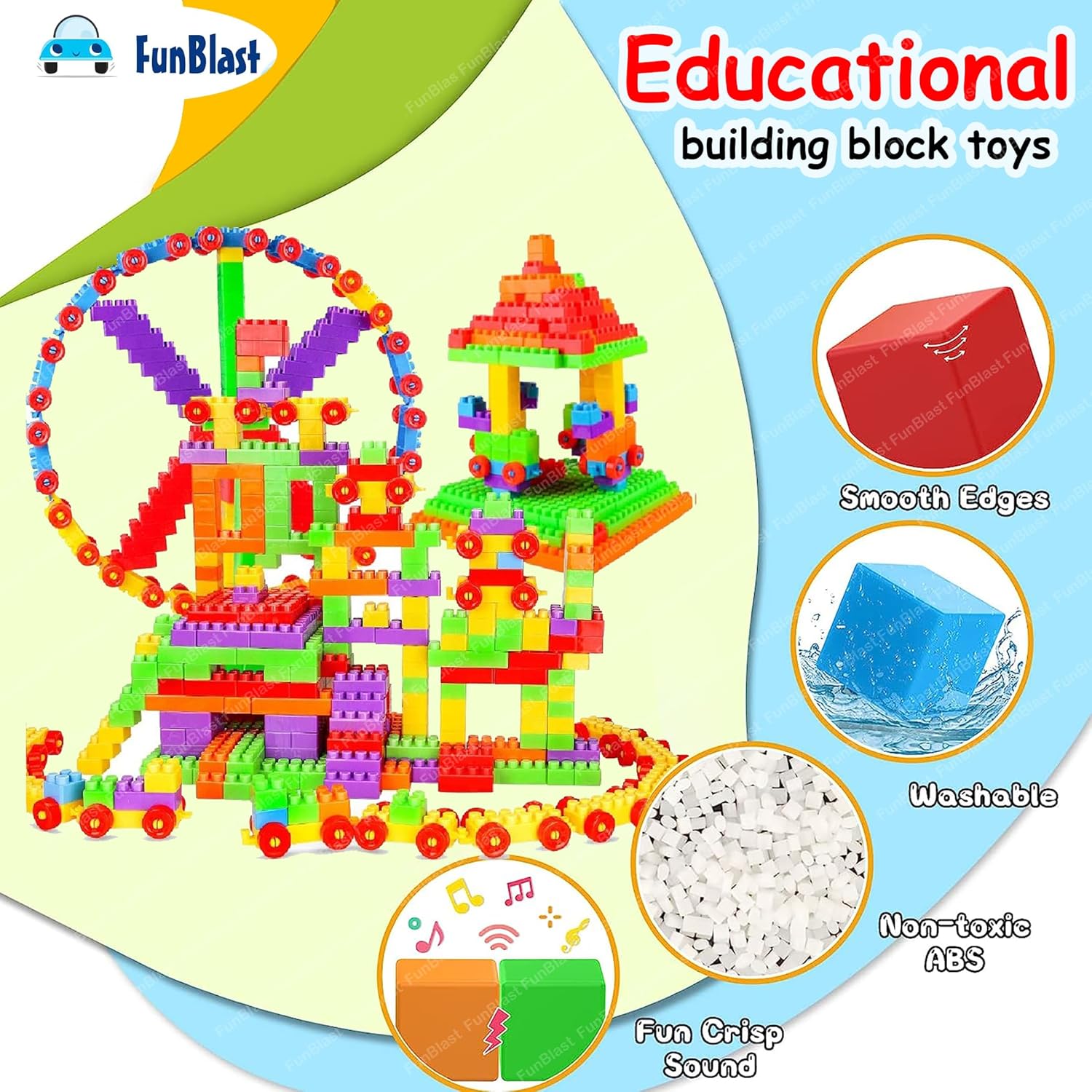 FunBlast DIY Plastic Building Blocks for Kids Building Blocks Toy for Kids Puzzle Games for Kids, Toys for Children Educational & Learning Toy for Kids, Girls & Boys - (250+ Blocks with 38 Wheels) -Made in India Kids Block Toy - In the Bag - Building Blocks Includes 250+ blocks with 38 wheels for kids. Recommended Age - 3+ Year Kids Toys Puzzles - An amazing variety of shapes, sizes and colors for easy sorting, counting, patterns, stacking and playing, creating attractive models like bus chairs, house, robot toy, car toy, aero plane, train. Kids Puzzle Blocks - This puzzle block comes in a box, which makes it very convenient to store the blocks and move them from one place to another. Great preschool toddler toy for kids to learn. Early Development Toys - Perfect for promoting children's fine motor skills, stimulates imagination and creativity, develops hand-eye coordination and logic thinking, builds confidence. Safe & durable material - This building block set is made of high quality and durable plastic, which is safe for children.
