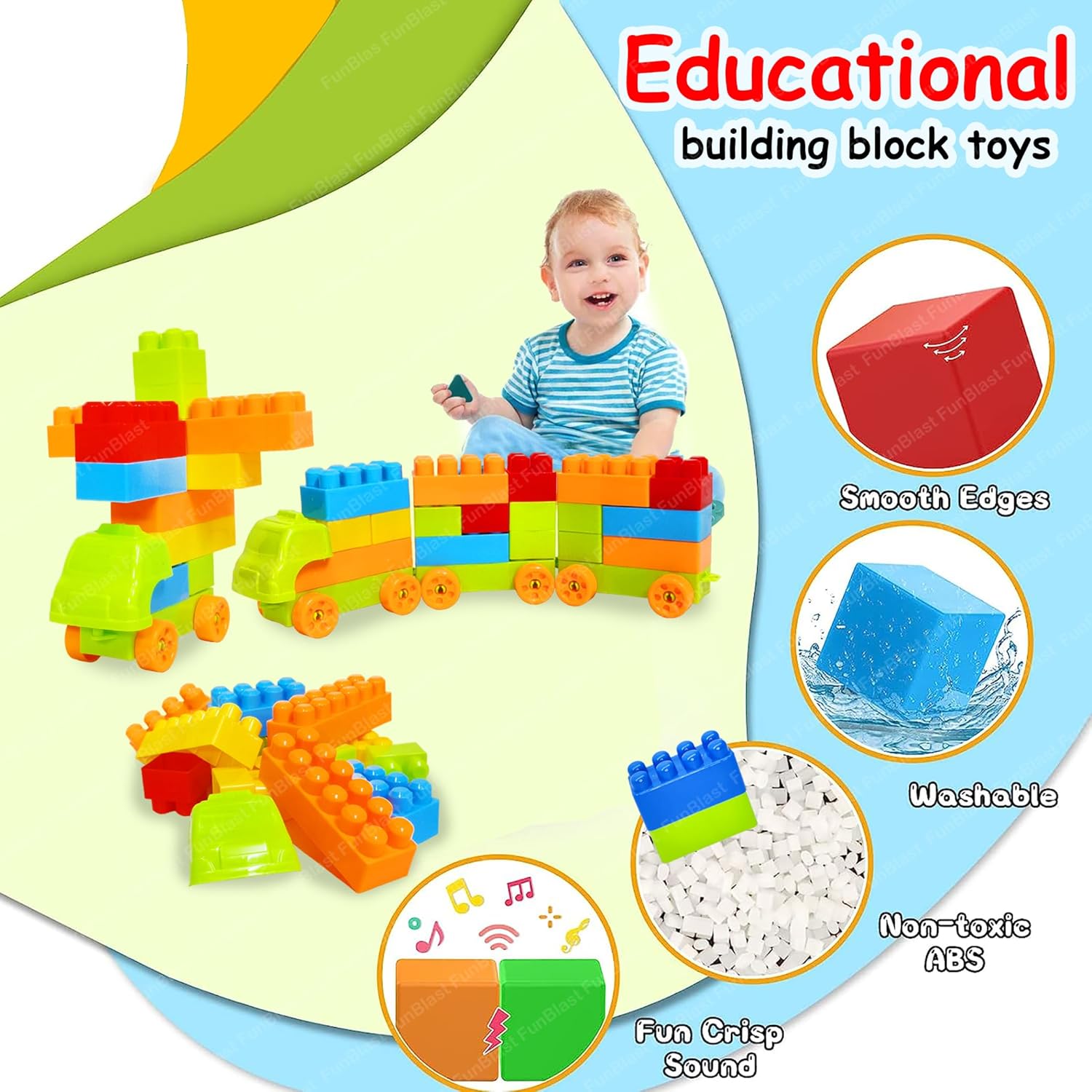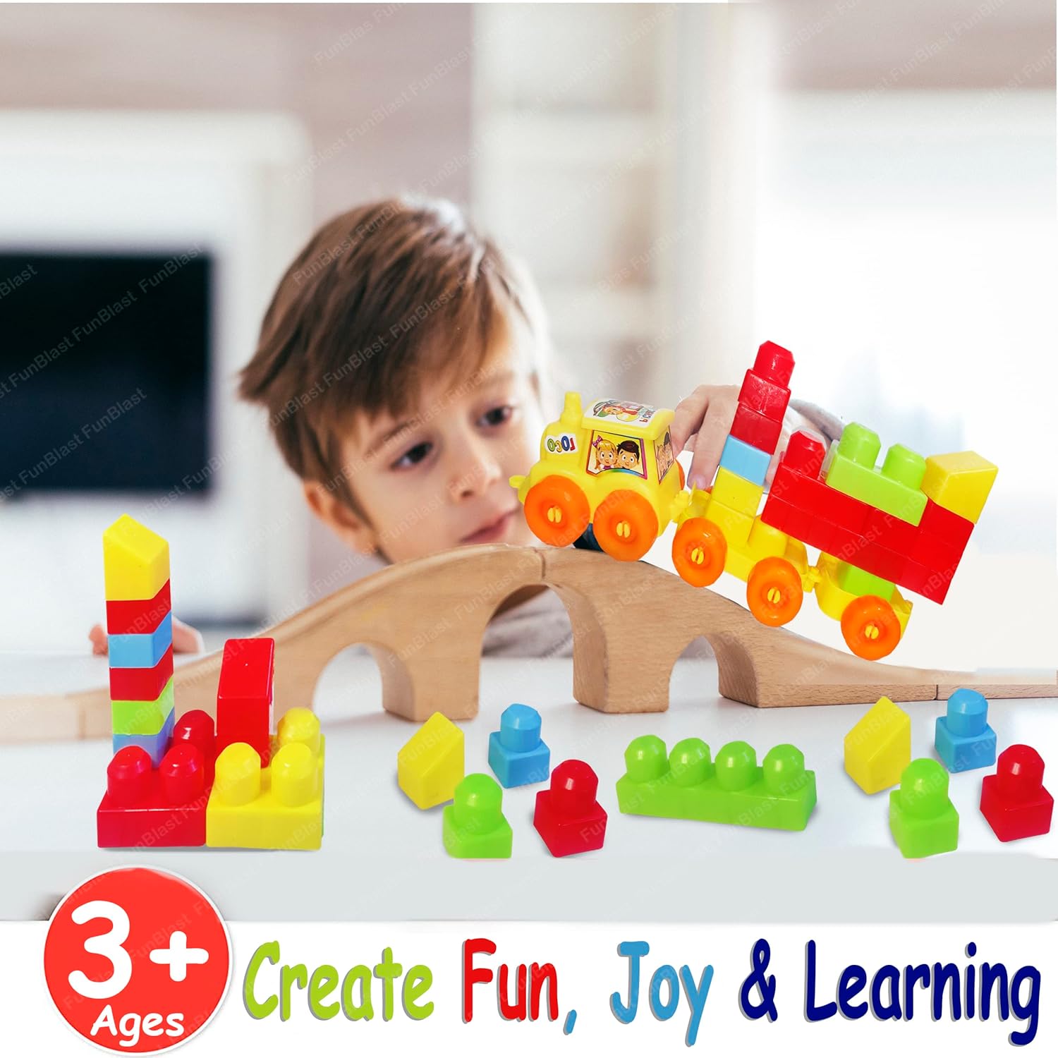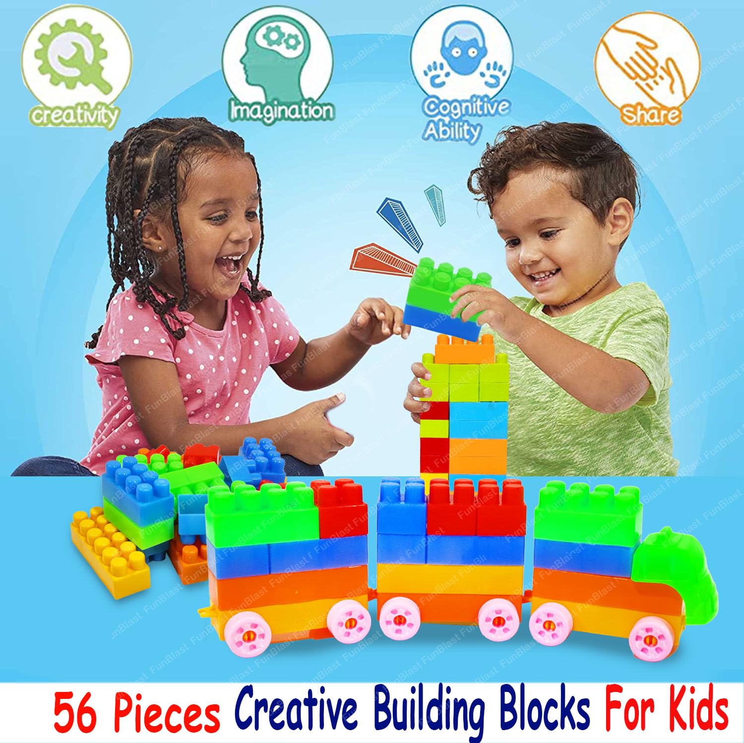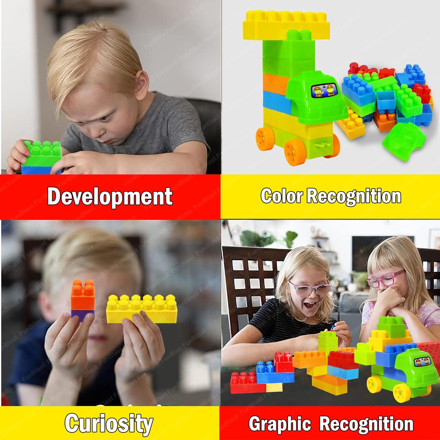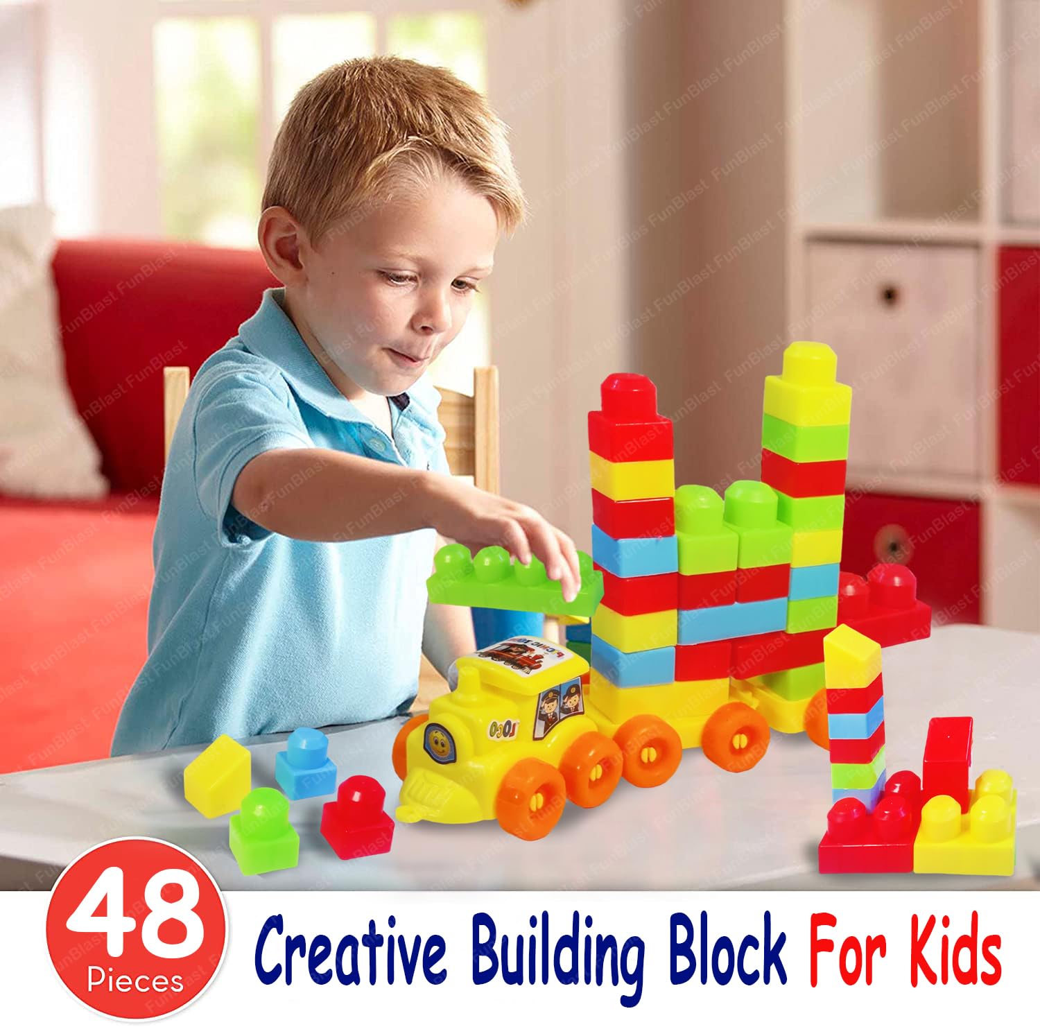 FunBlast DIY Plastic Building Blocks for Kids Building Blocks Toy for Kids Puzzle Games for Kids, Toys for Children Educational & Learning Toy for Kids, Girls & Boys - (250+ Blocks with 38 Wheels) -Made in India Kids Block Toy - In the Bag - Building Blocks Includes 250+ blocks with 38 wheels for kids. Recommended Age - 3+ Year Kids Toys Puzzles - An amazing variety of shapes, sizes and colors for easy sorting, counting, patterns, stacking and playing, creating attractive models like bus chairs, house, robot toy, car toy, aero plane, train. Kids Puzzle Blocks - This puzzle block comes in a box, which makes it very convenient to store the blocks and move them from one place to another. Great preschool toddler toy for kids to learn. Early Development Toys - Perfect for promoting children's fine motor skills, stimulates imagination and creativity, develops hand-eye coordination and logic thinking, builds confidence. Safe & durable material - This building block set is made of high quality and durable plastic, which is safe for children.