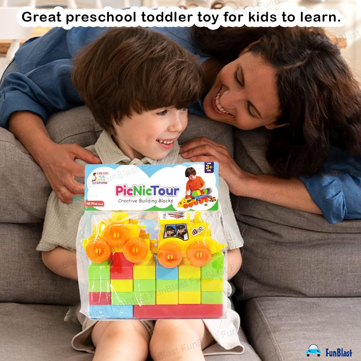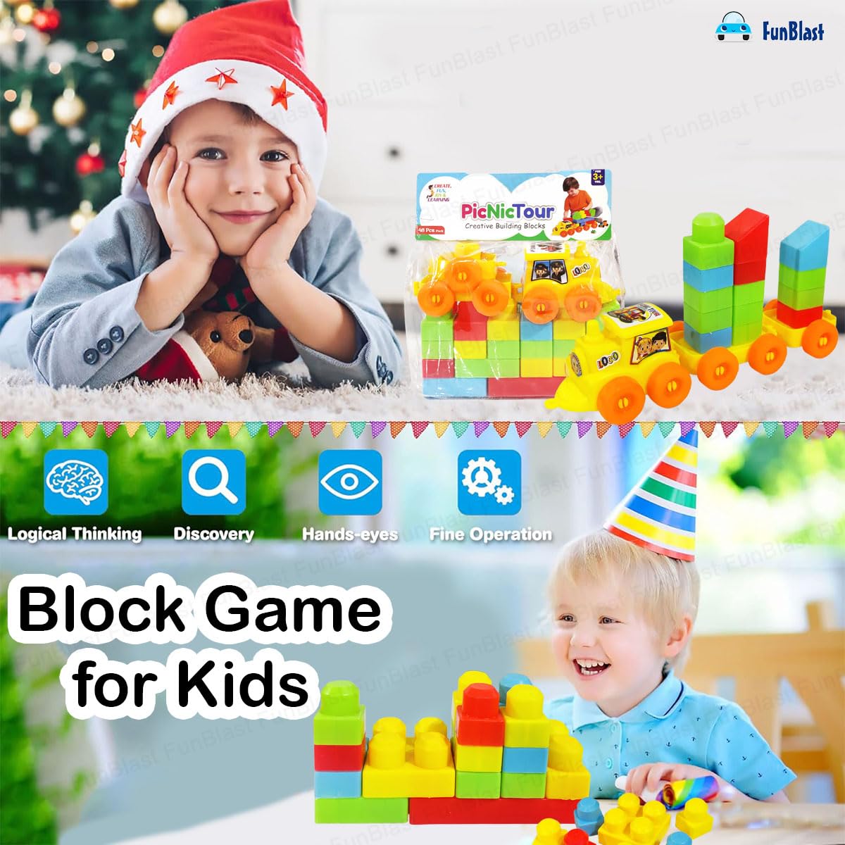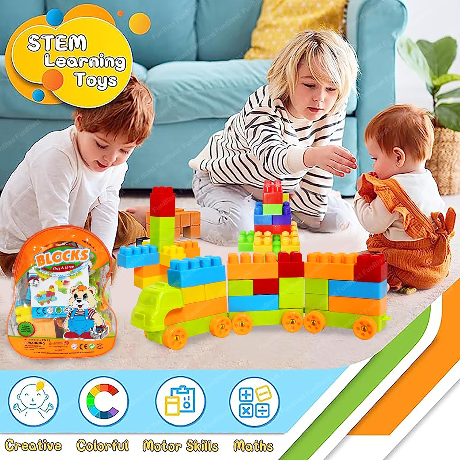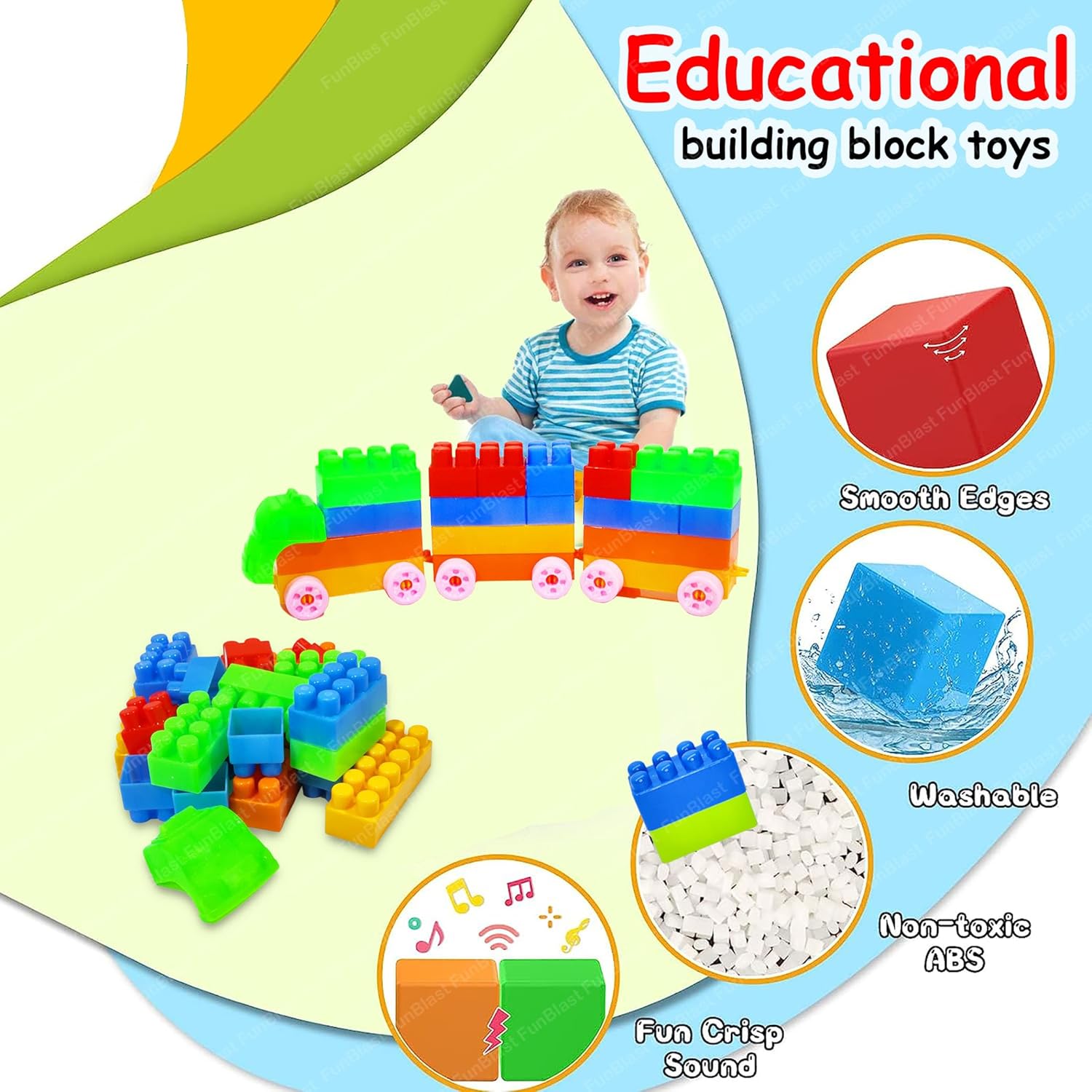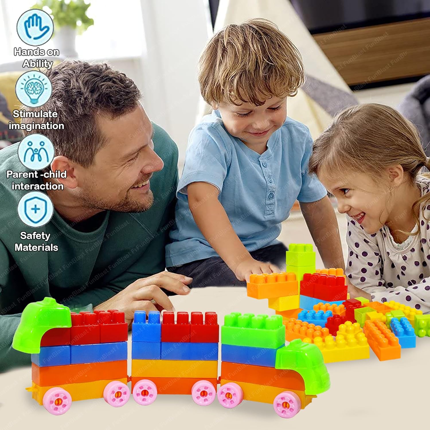 FunBlast DIY Plastic Building Blocks for Kids Building Blocks Toy for Kids Puzzle Games for Kids, Toys for Children Educational & Learning Toy for Kids, Girls & Boys - (250+ Blocks with 38 Wheels) -Made in India Kids Block Toy - In the Bag - Building Blocks Includes 250+ blocks with 38 wheels for kids. Recommended Age - 3+ Year Kids Toys Puzzles - An amazing variety of shapes, sizes and colors for easy sorting, counting, patterns, stacking and playing, creating attractive models like bus chairs, house, robot toy, car toy, aero plane, train. Kids Puzzle Blocks - This puzzle block comes in a box, which makes it very convenient to store the blocks and move them from one place to another. Great preschool toddler toy for kids to learn. Early Development Toys - Perfect for promoting children's fine motor skills, stimulates imagination and creativity, develops hand-eye coordination and logic thinking, builds confidence. Safe & durable material - This building block set is made of high quality and durable plastic, which is safe for children.