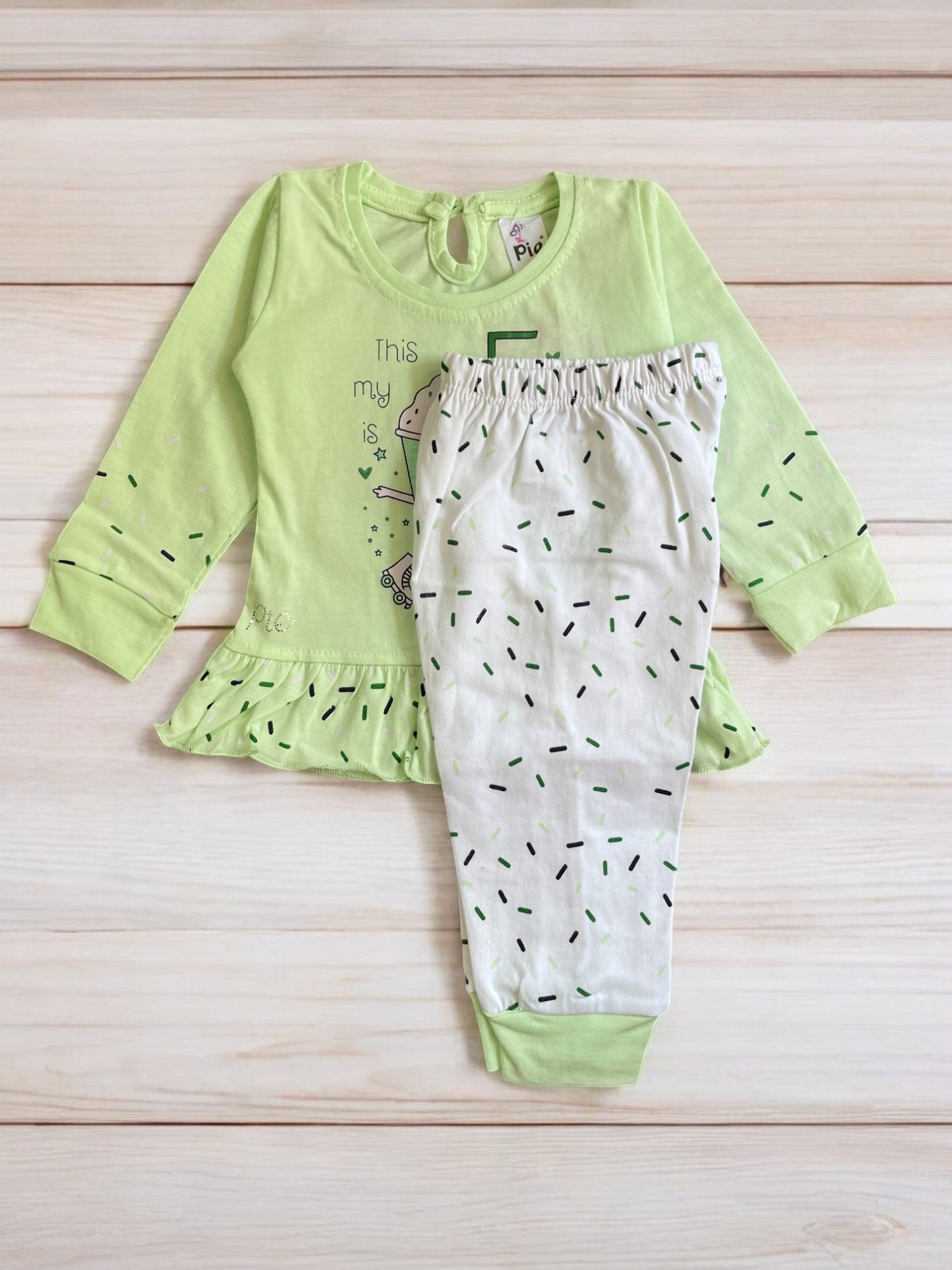 Imagine your little girl snuggled up in this charming pajama set, where vibrant colors and whimsical patterns create a dreamy atmosphere. The full sleeves and gentle fabric help keep her warm during chilly nights, while the fun cupcake theme makes bedtime a delightful experience. Ideal for sleepovers, lounging at home, or relaxing weekends, this pajama set will quickly become a favorite.