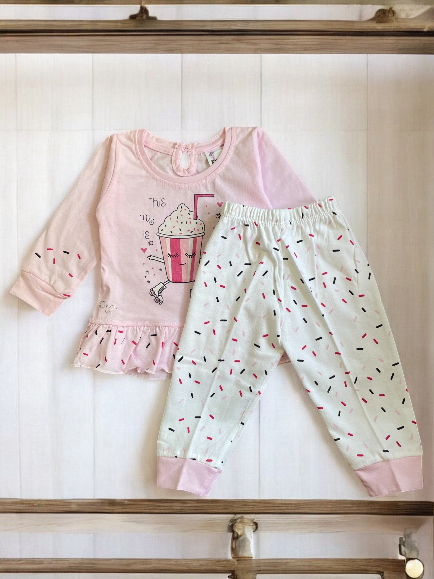 Adorable Cupcake-Themed Girls Pajama Set with Full Sleeve Top and Bottom