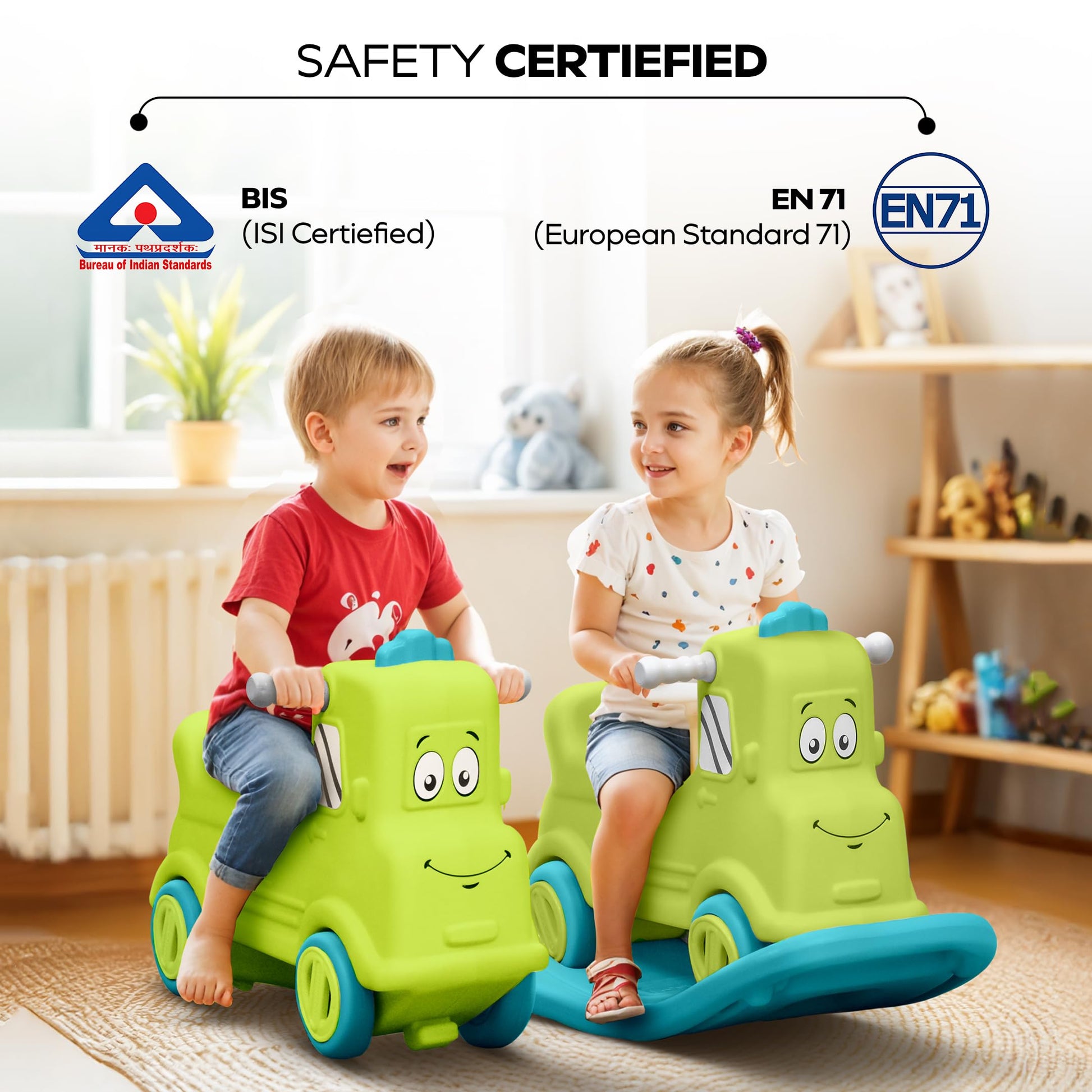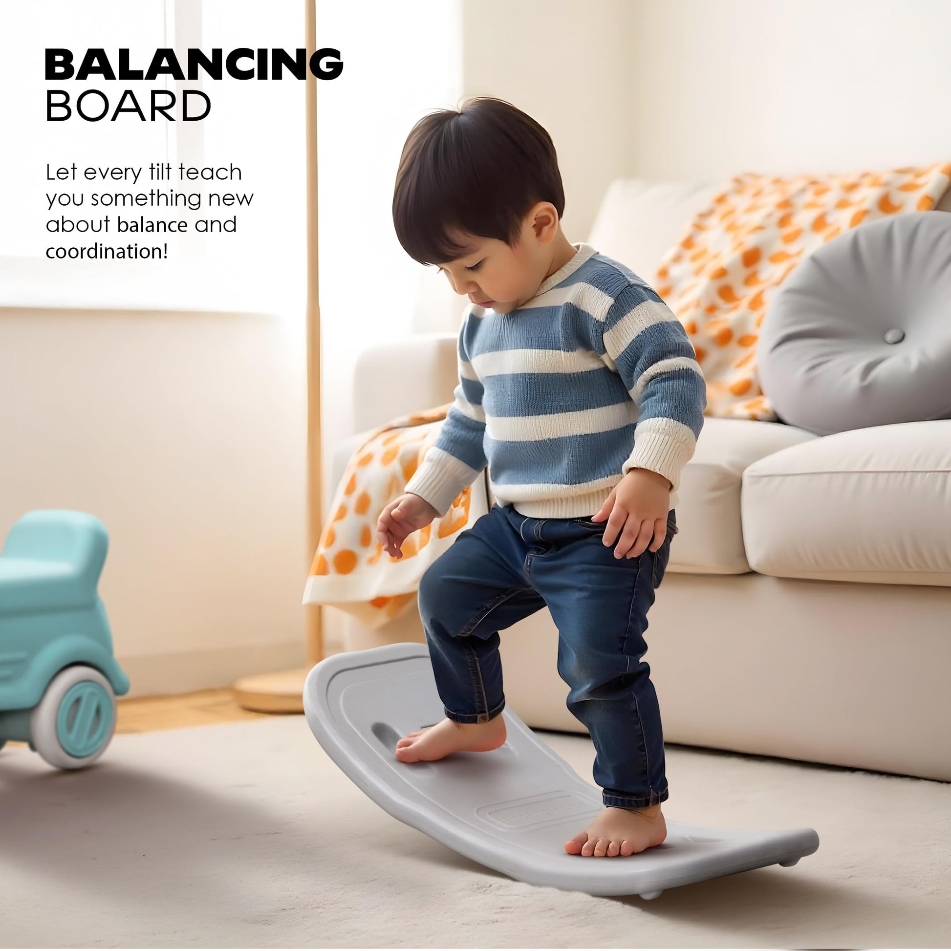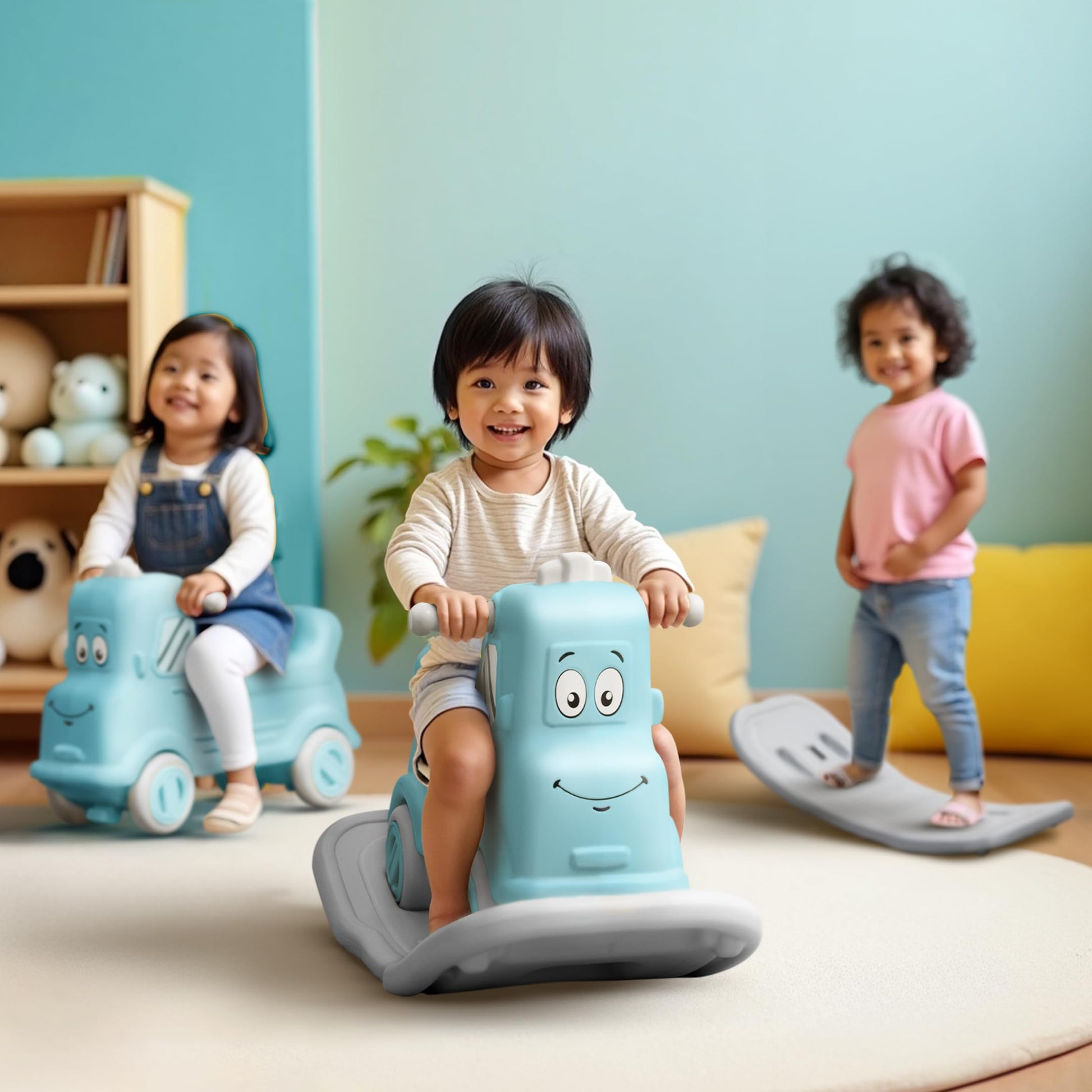 - Rocker Mode (12–15 Months): A cosy rocker mode that soothes and helps develop motor skills with gentle, rhythmic movements. Rider Mode (15–36 Months): Converts into a self-propelled rider for toddlers to strengthen leg muscles while exploring independently. Equilibrium Mode (36 Months+): Balance Board Transforms into a balance activity, promoting core stability and coordination.