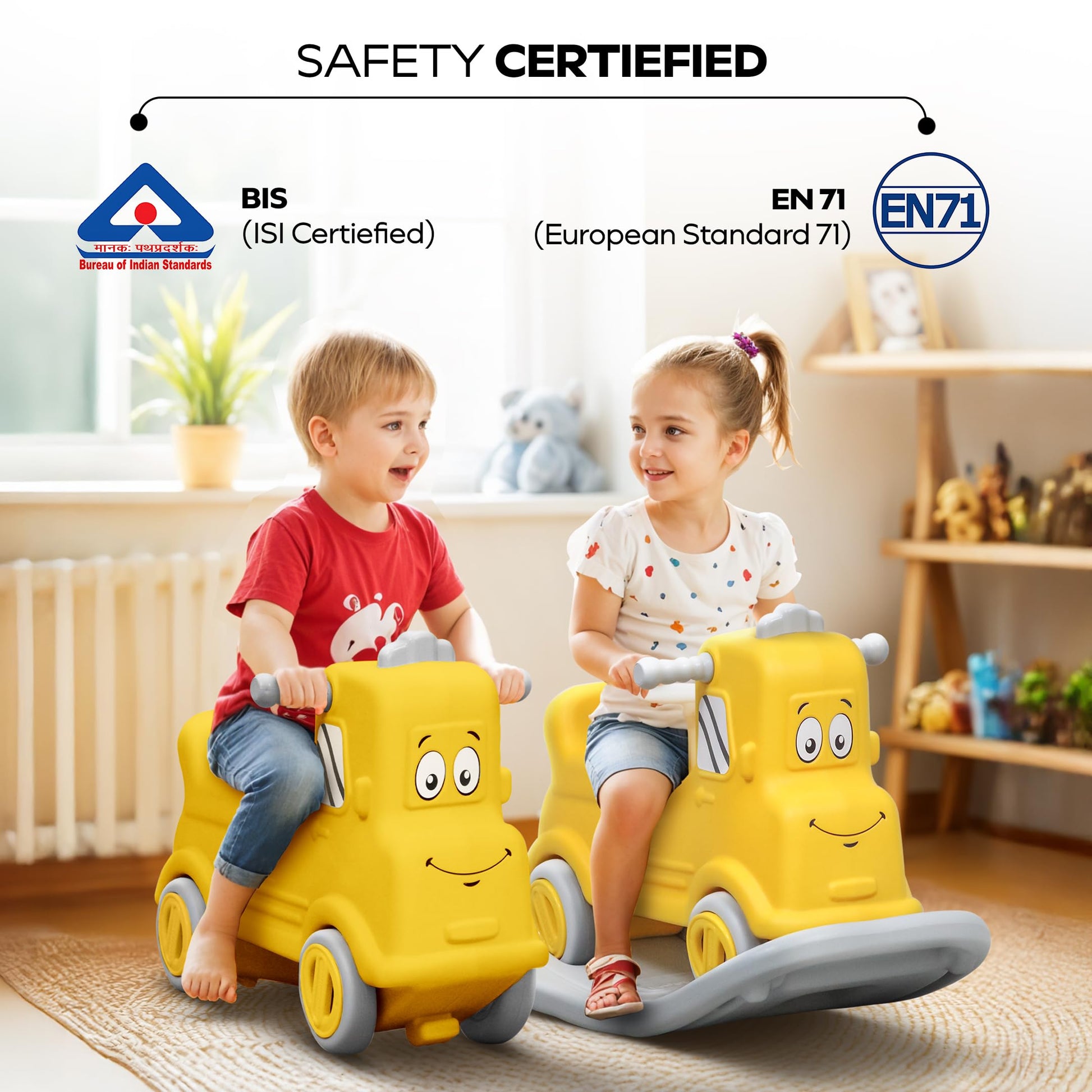 Happy Bear 3-in-1 Rock and Roll Ride-On | Push Car for 1 – 5 Years | Rocking Horse for Toddlers | Balance Board | Safe, Sturdy & Fun Indoor Toy - Yellow