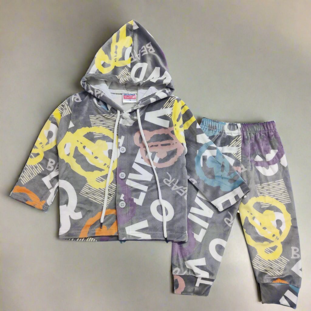 Our Kids Hooded Top and Pants Set comes in a variety of eye-catching colors and patterns, making it a versatile choice for any occasion. Whether it's for a day at the park, playdates with friends, or simply lounging at home, your little one will be ready for anything. The top features an easy-to-use front pocket, perfect for storing little treasures, while the pants have an elastic waistband that provides a secure fit without compromising on comfort.
