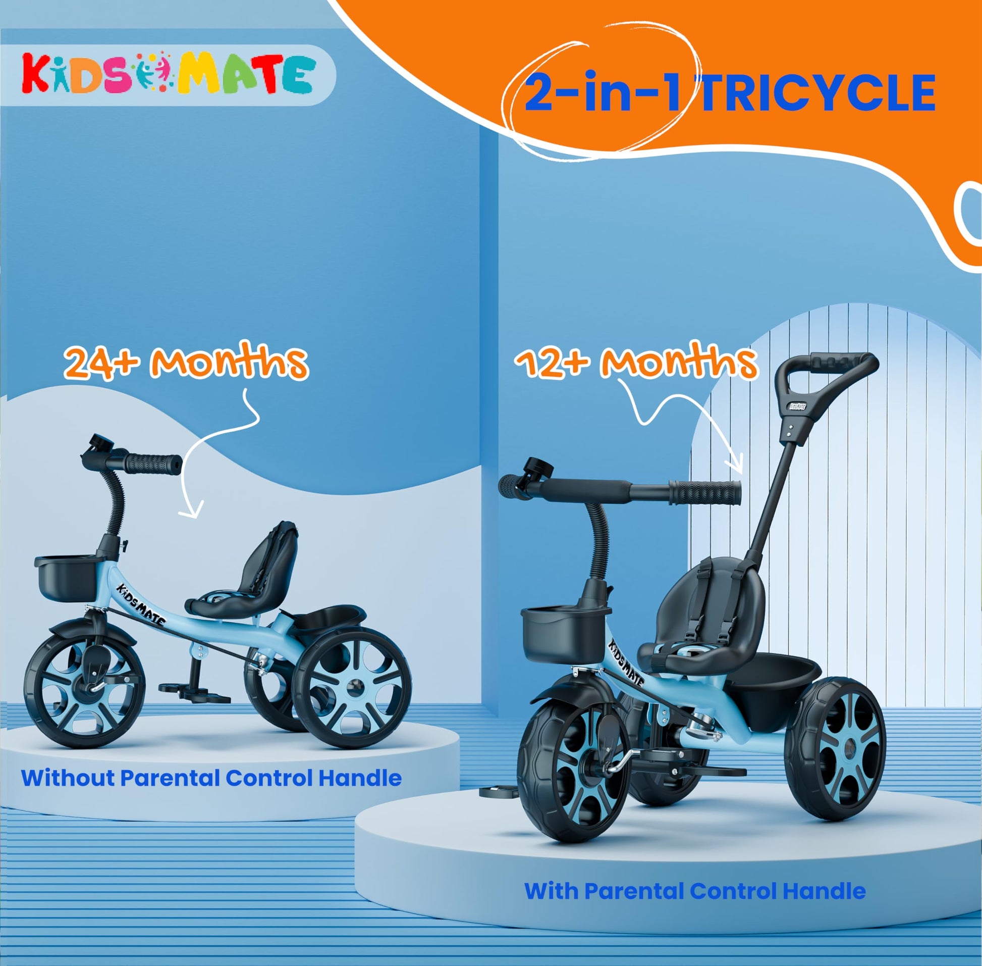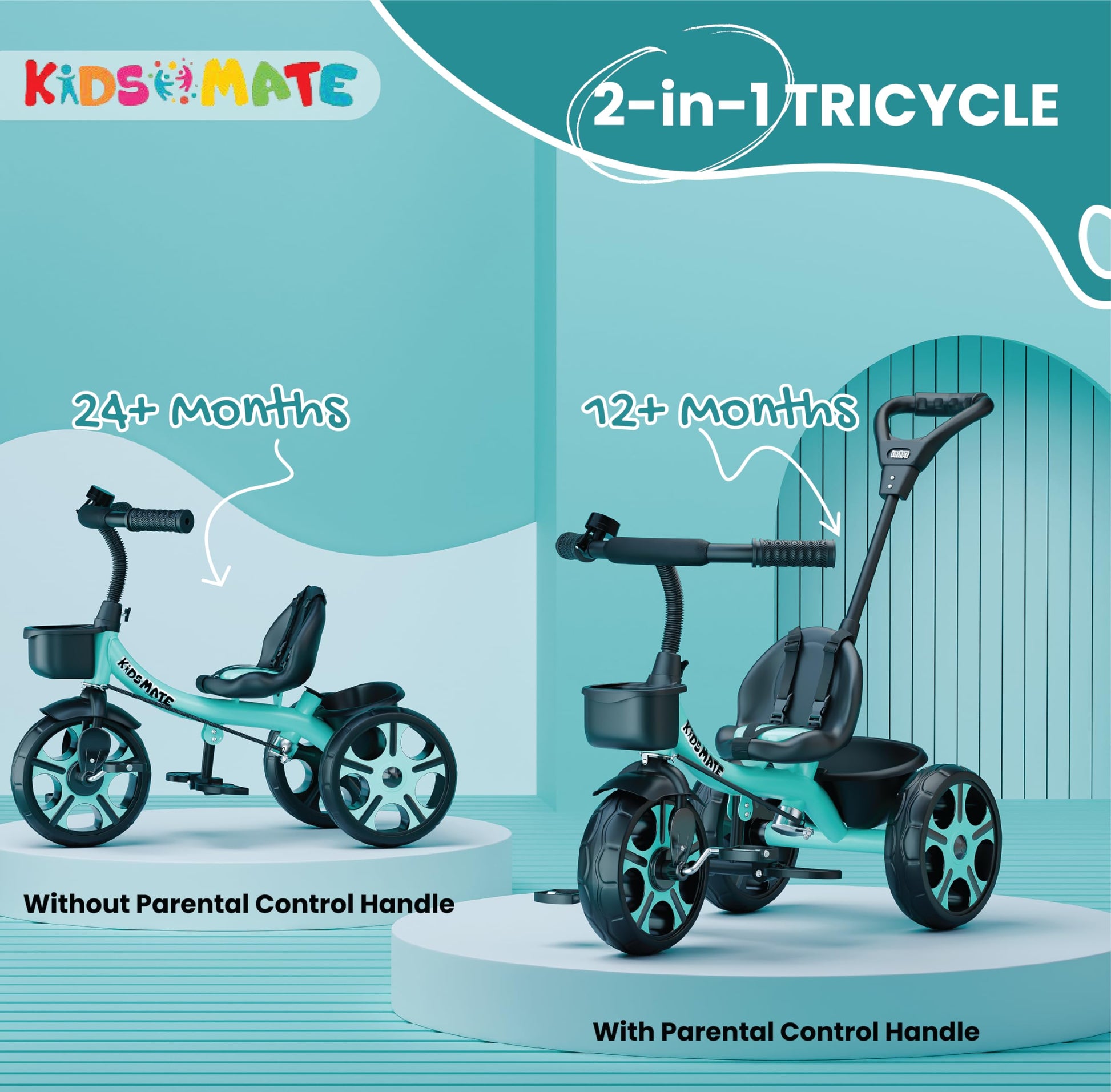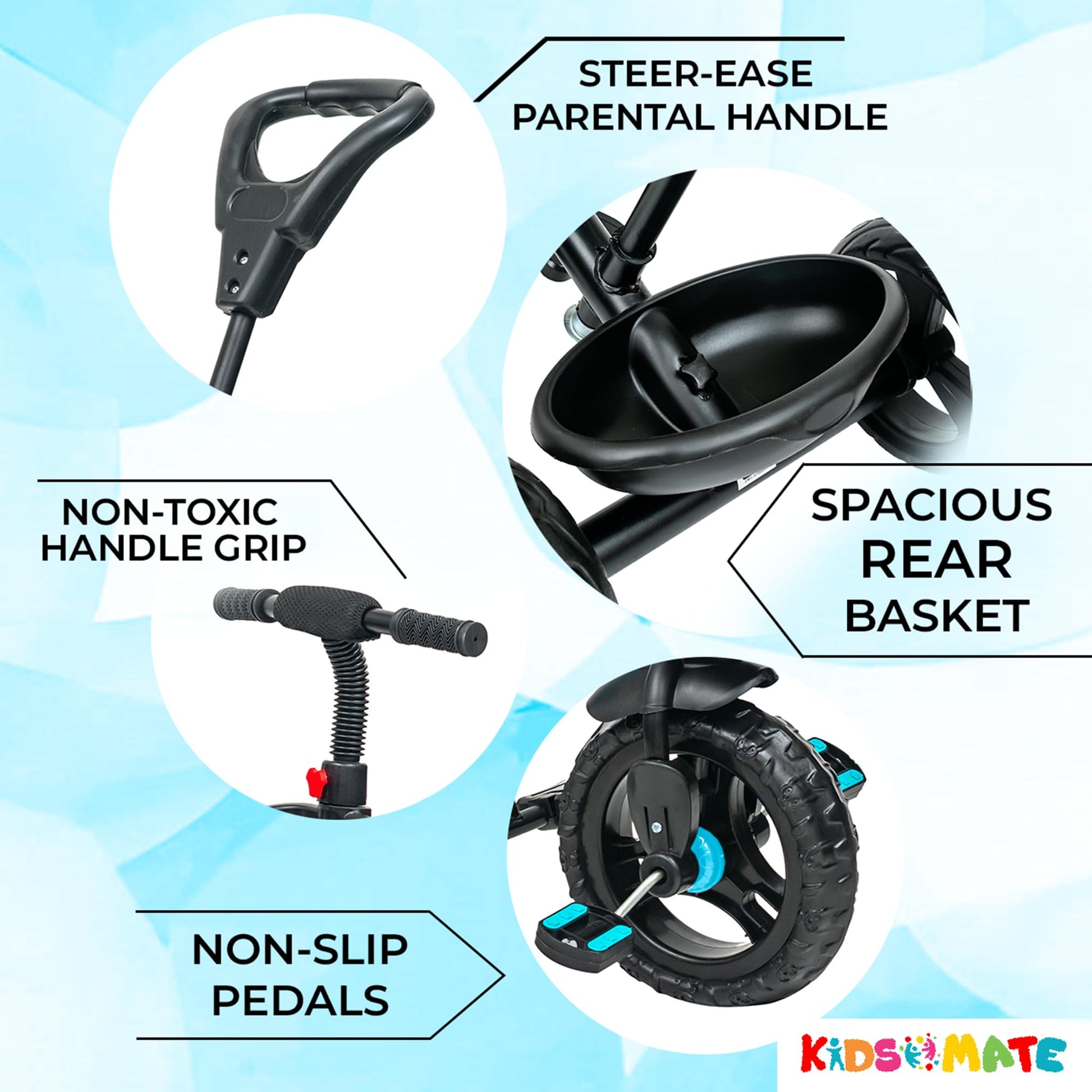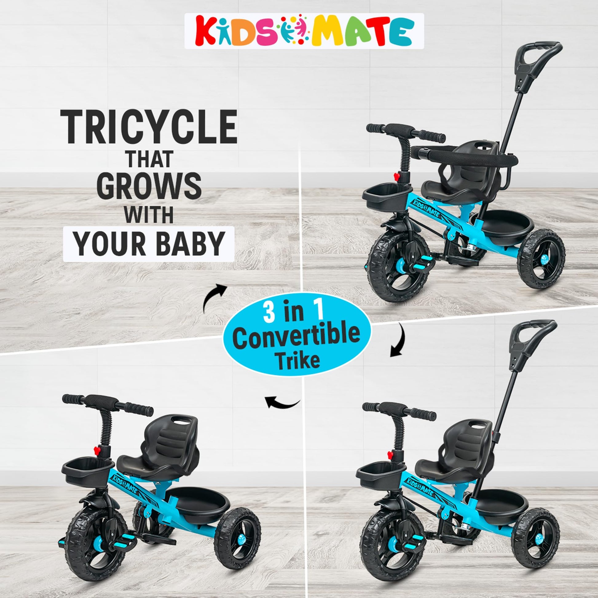 Kidsmate Xplorer 3-in-1 Tricycle for Kids | Durable Plug & Play Baby Trike with EVA Wheels, Safety Rail & Push Handle for Parents | Safe & Comfortable Ride for Toddlers 12-48 Months