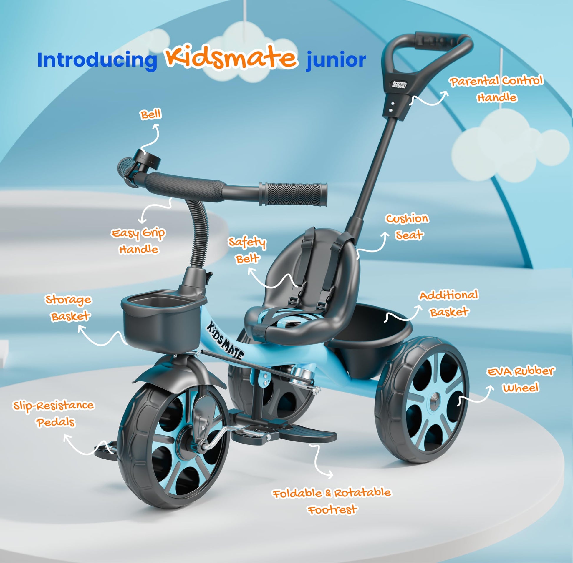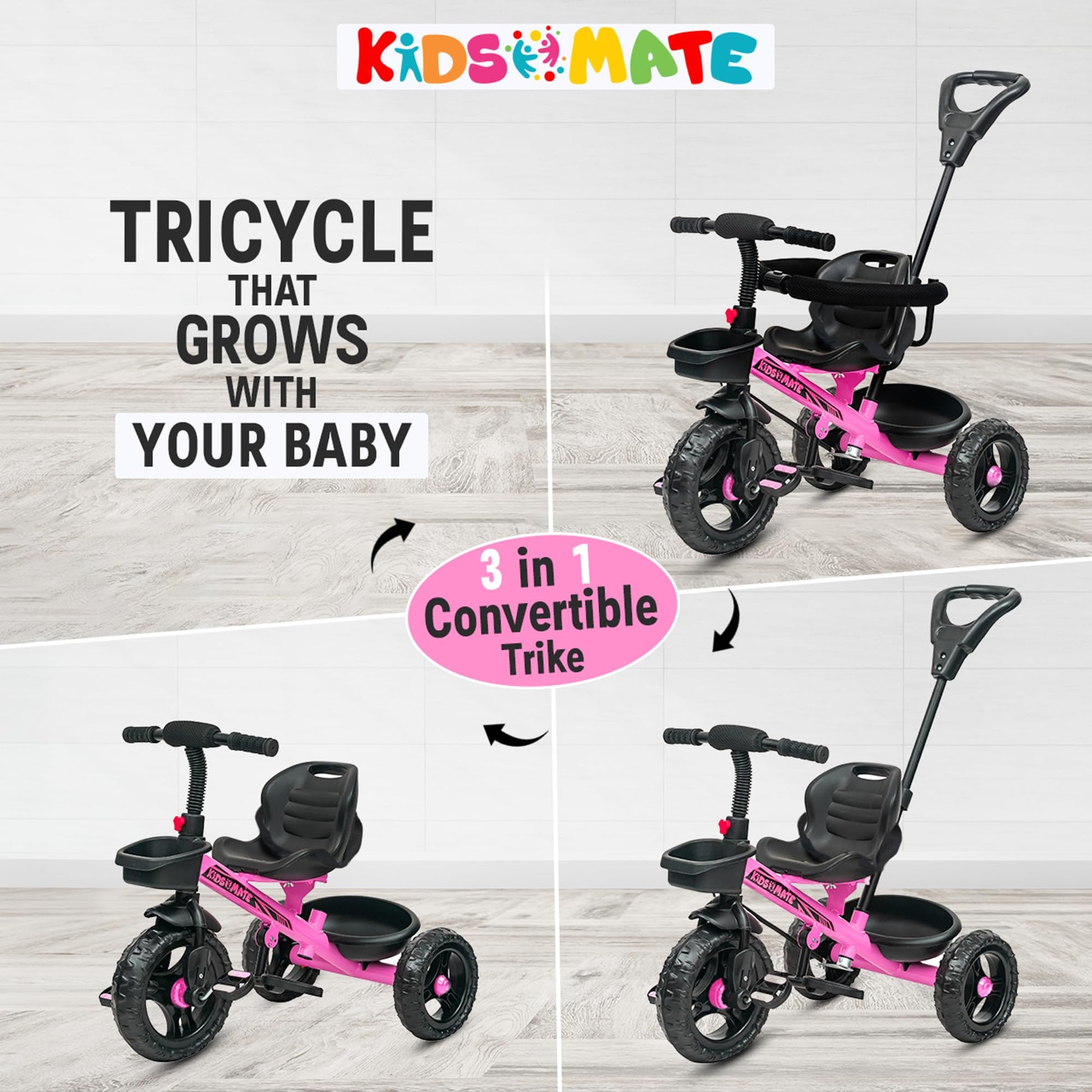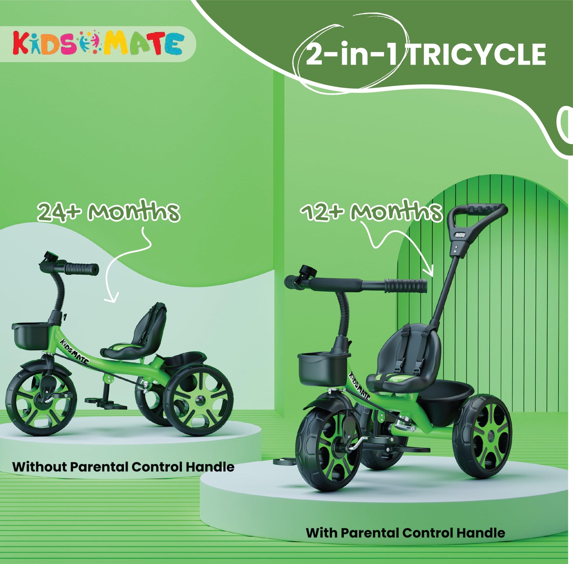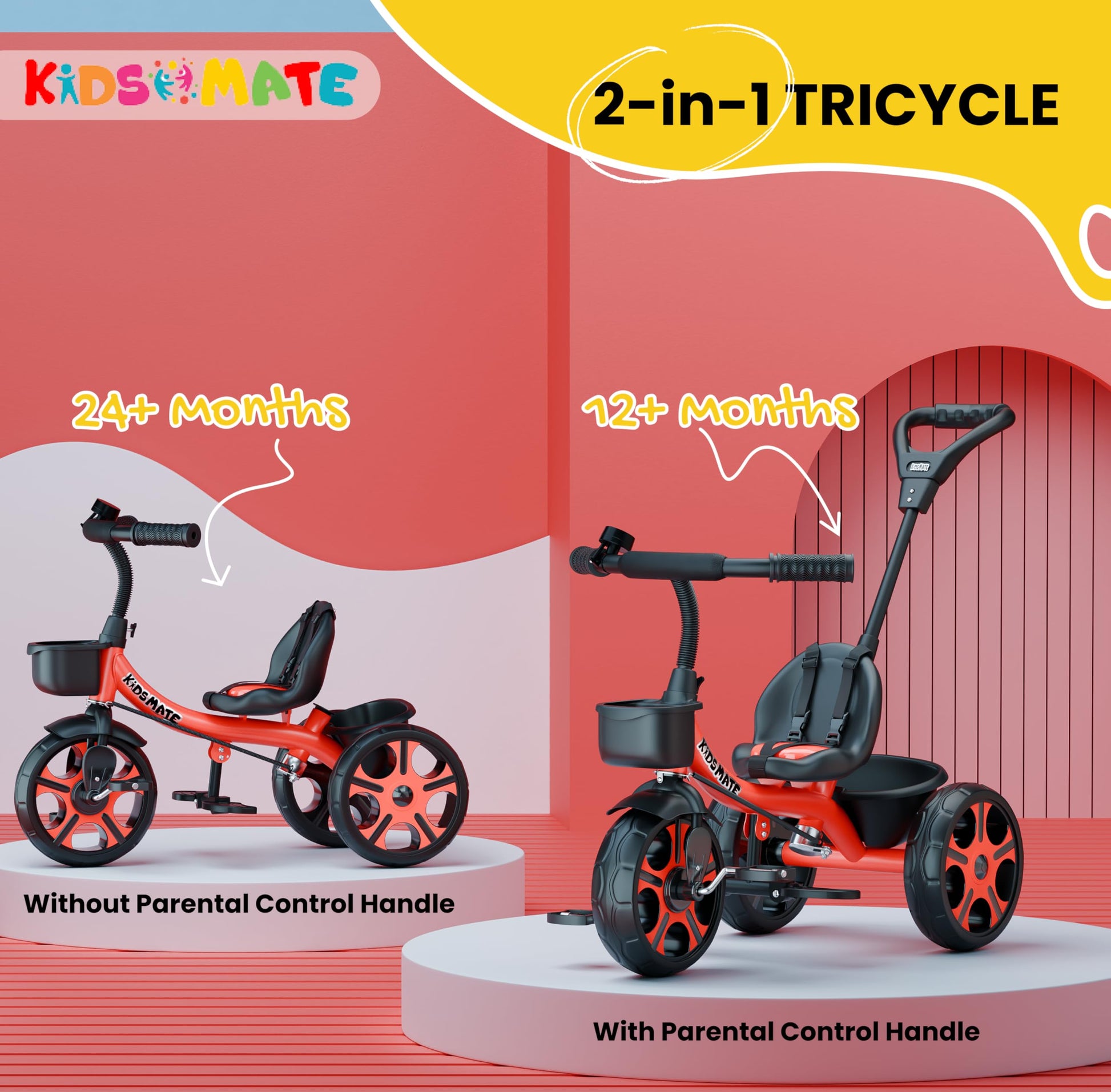 Kidsmate Xplorer 3-in-1 Tricycle for Kids | Durable Plug & Play Baby Trike with EVA Wheels, Safety Rail & Push Handle for Parents | Safe & Comfortable Ride for Toddlers 12-48 Months