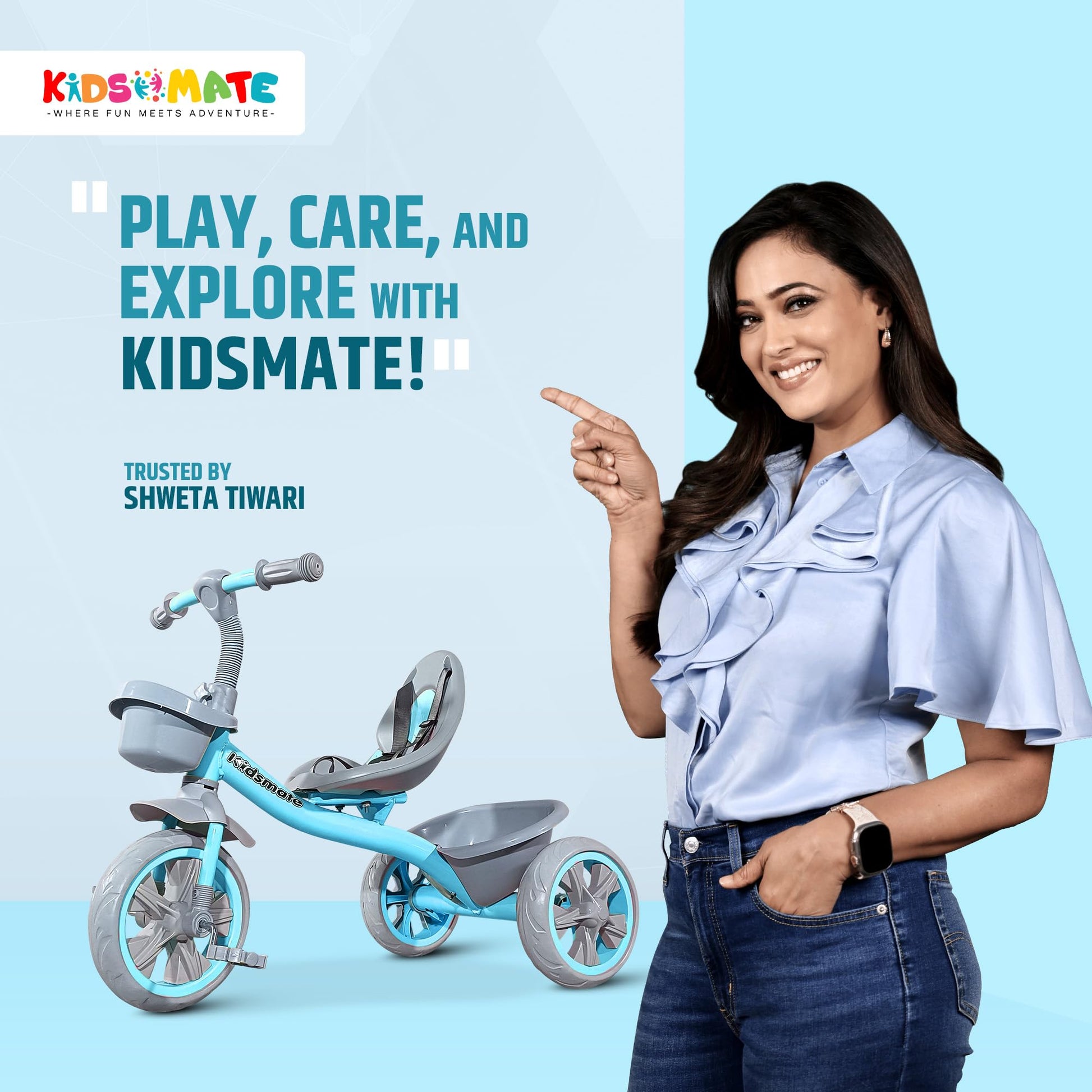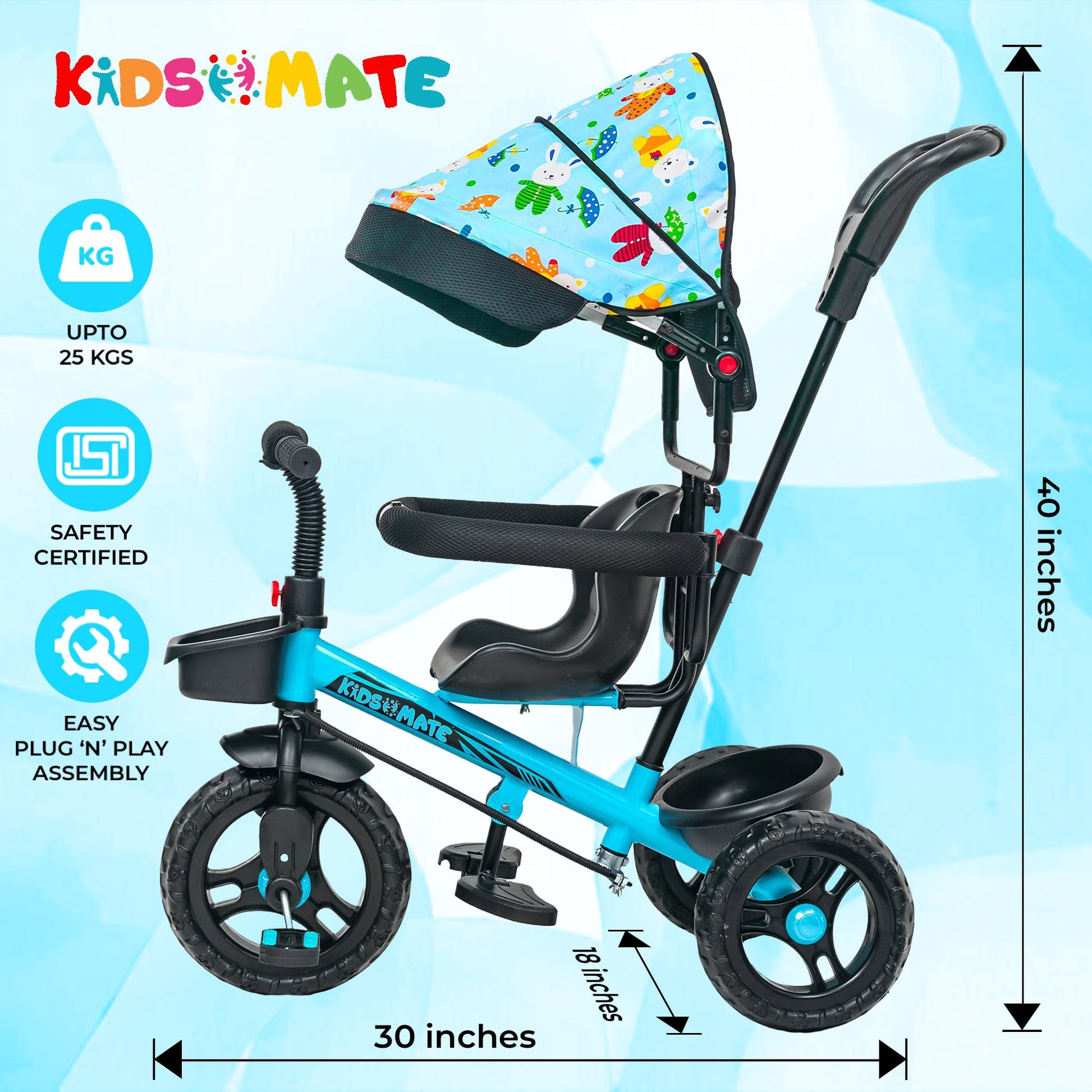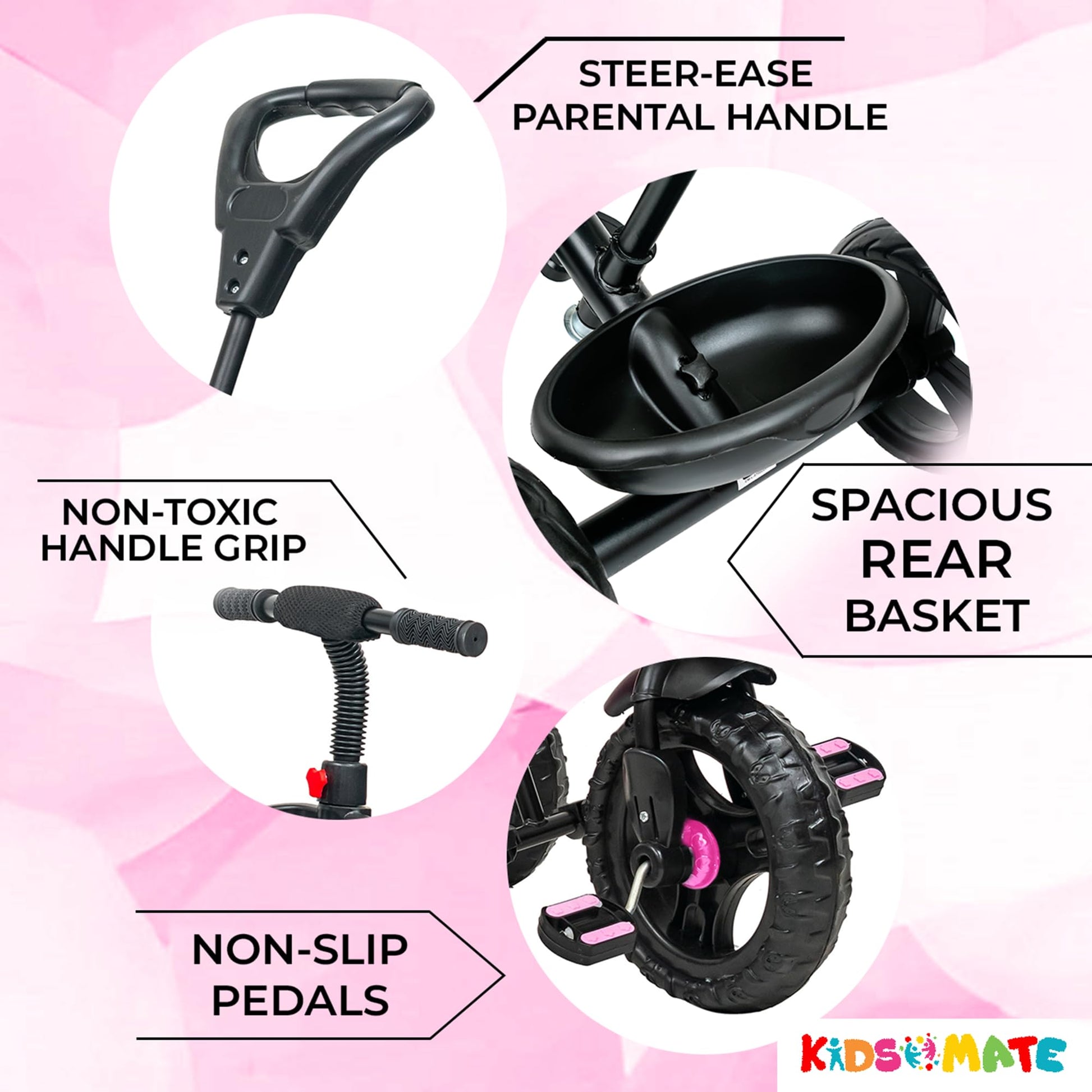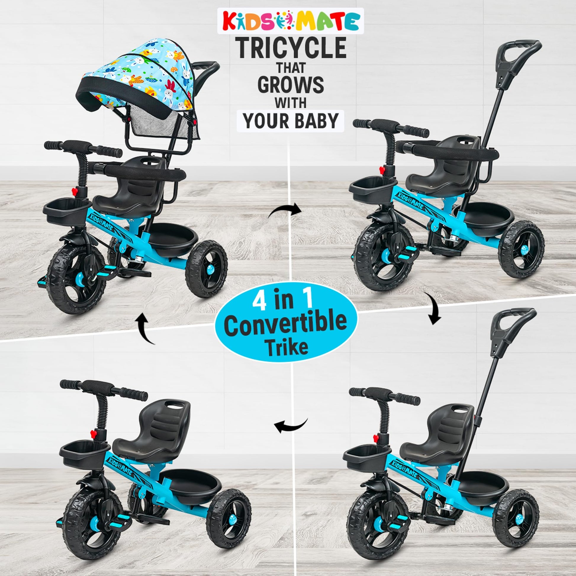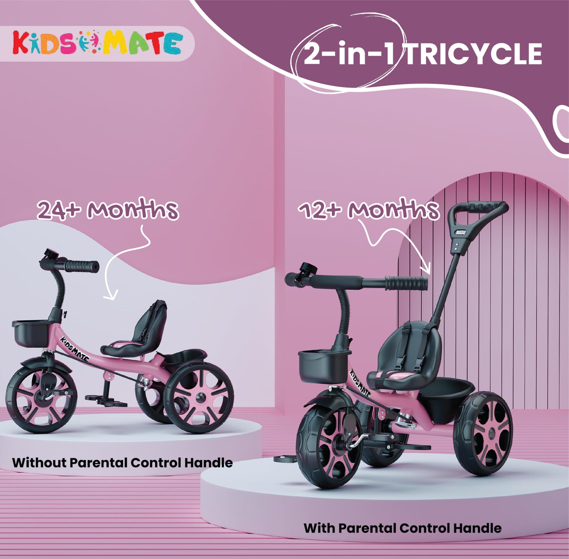 Kidsmate Xplorer 3-in-1 Tricycle for Kids | Durable Plug & Play Baby Trike with EVA Wheels, Safety Rail & Push Handle for Parents | Safe & Comfortable Ride for Toddlers 12-48 Months