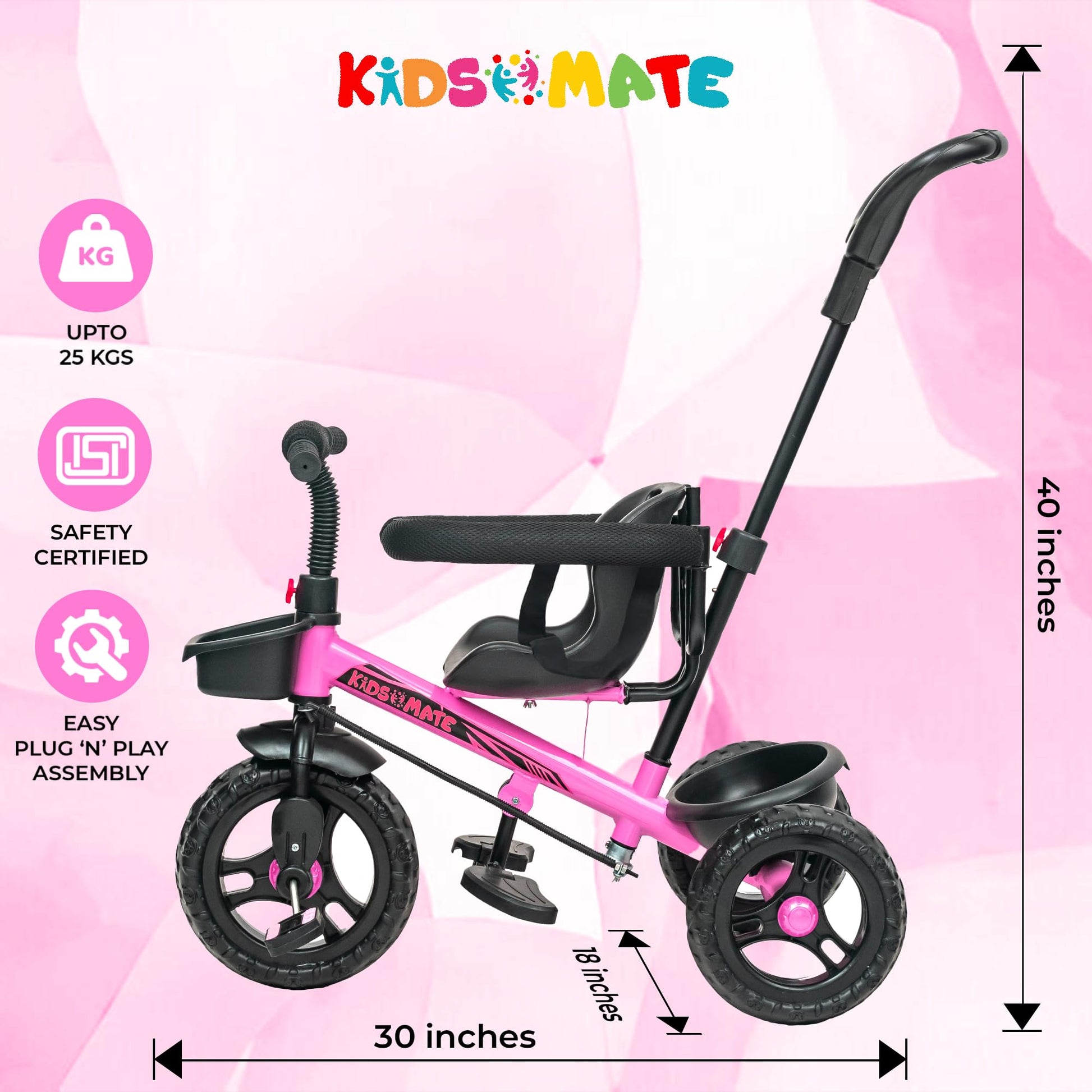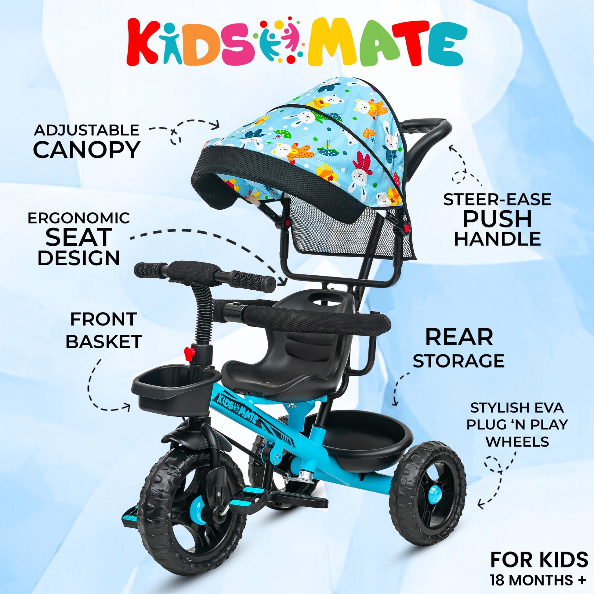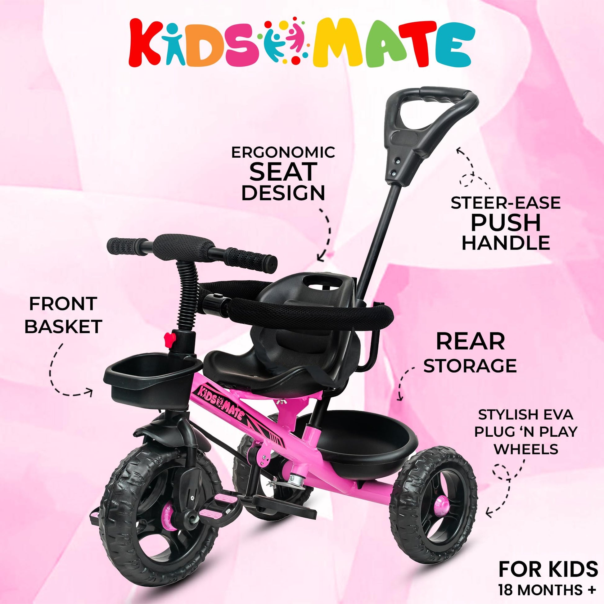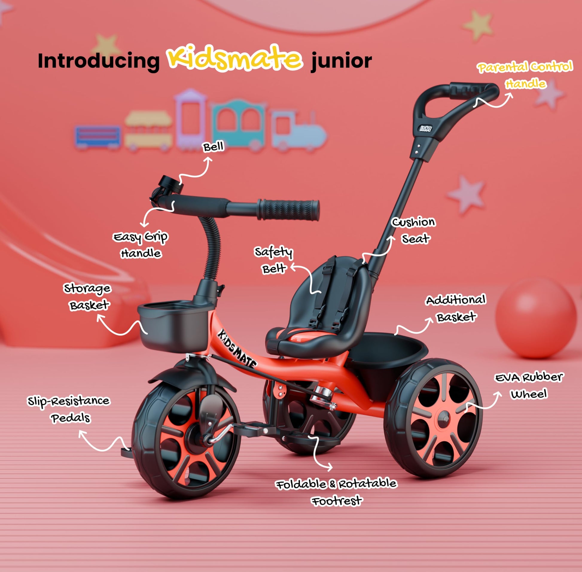 Kidsmate Xplorer 3-in-1 Tricycle for Kids | Durable Plug & Play Baby Trike with EVA Wheels, Safety Rail & Push Handle for Parents | Safe & Comfortable Ride for Toddlers 12-48 Months
