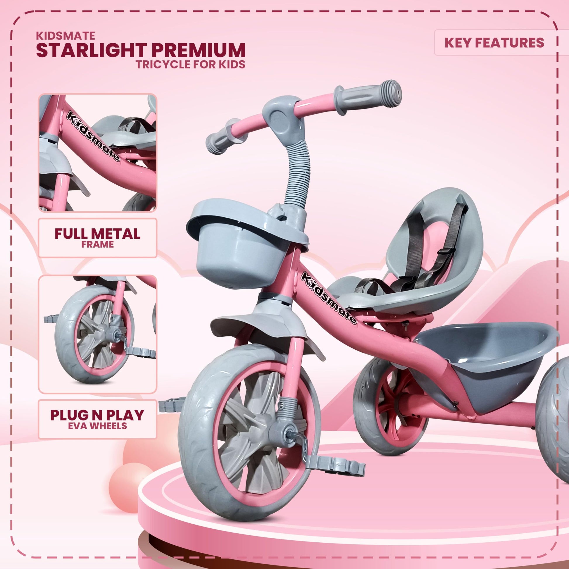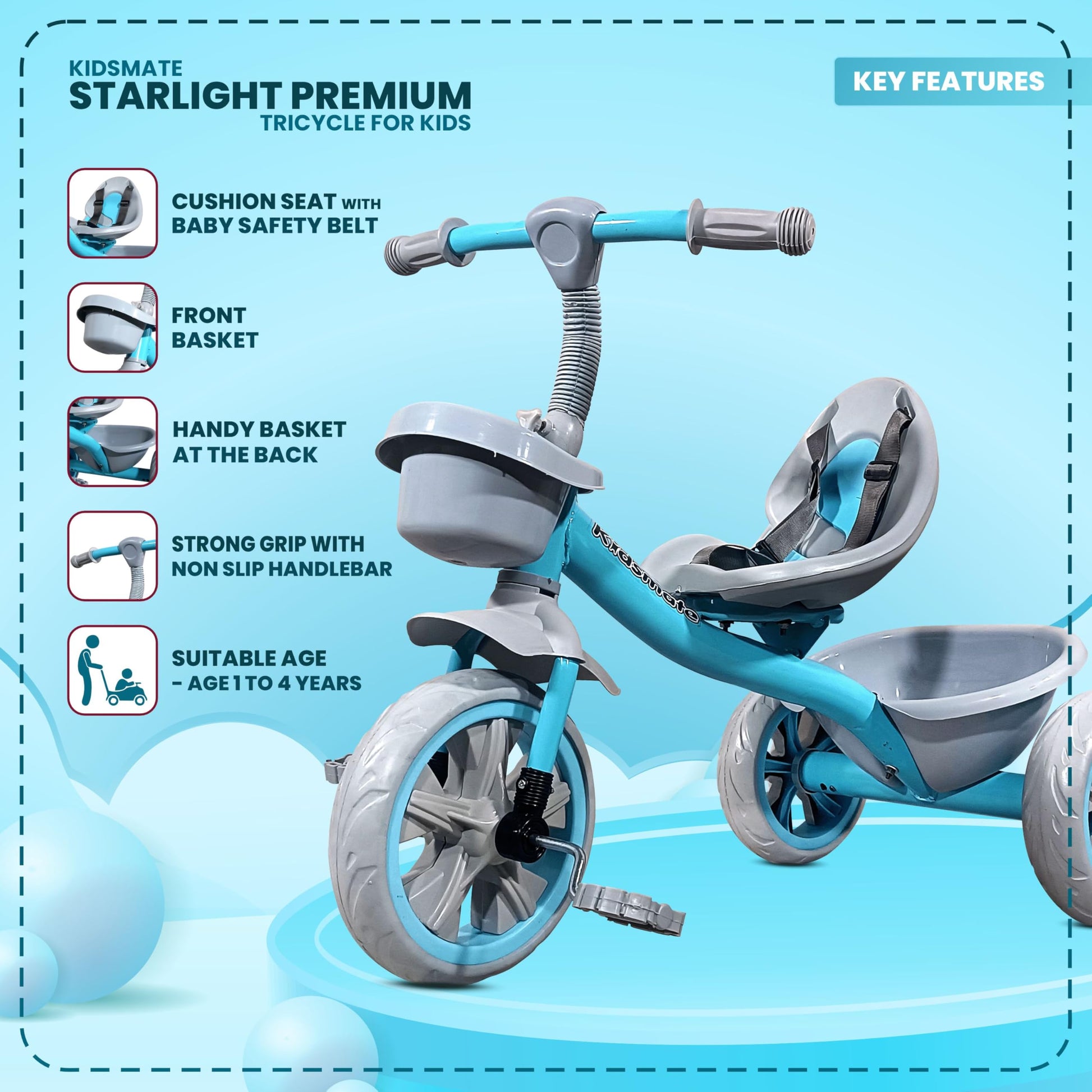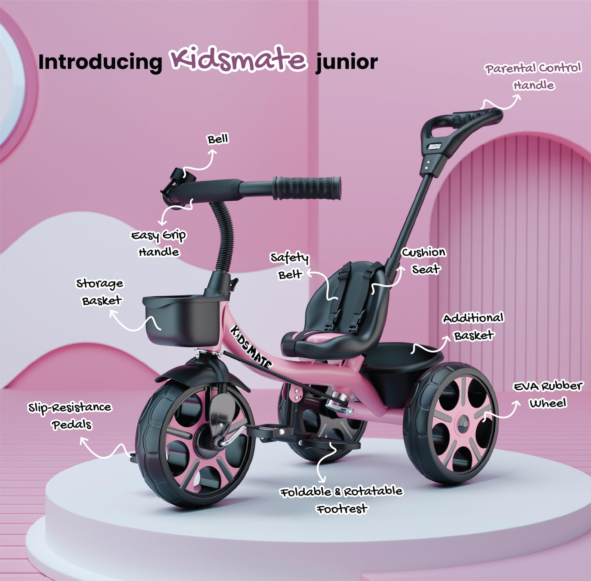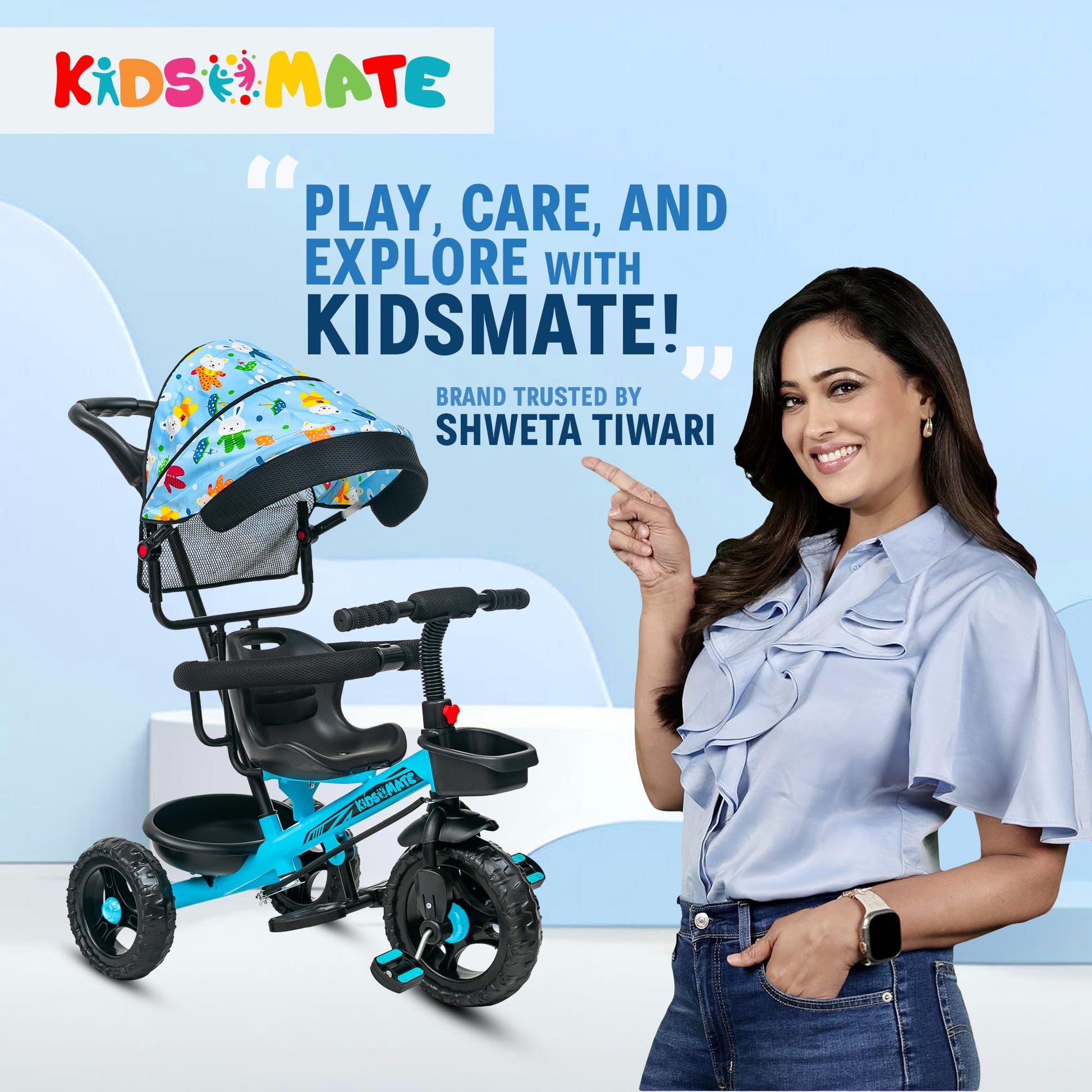 Kidsmate Xplorer 3-in-1 Tricycle for Kids | Durable Plug & Play Baby Trike with EVA Wheels, Safety Rail & Push Handle for Parents | Safe & Comfortable Ride for Toddlers 12-48 Months