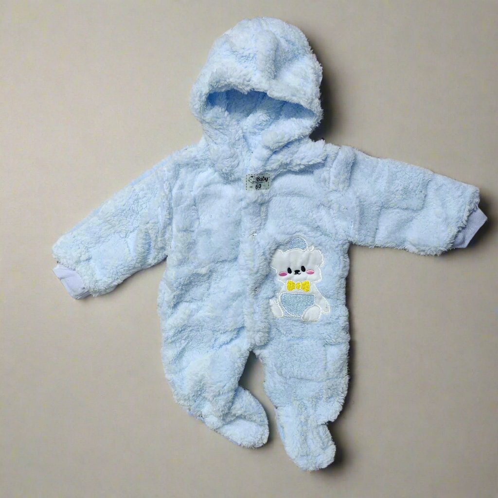 Dress your little one in comfort and style with this adorable light blue baby romper, designed to enhance their playtime experience. The soft, furry fleece material ensures warmth and coziness, making it perfect for chilly days. Its charming embroidered animal adds a delightful touch, sparking joy in every glance.