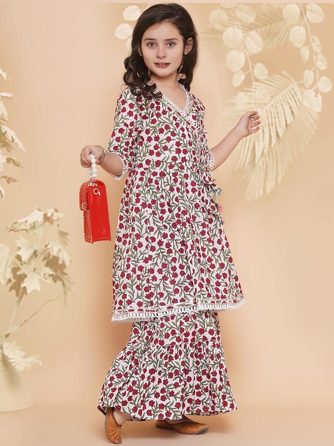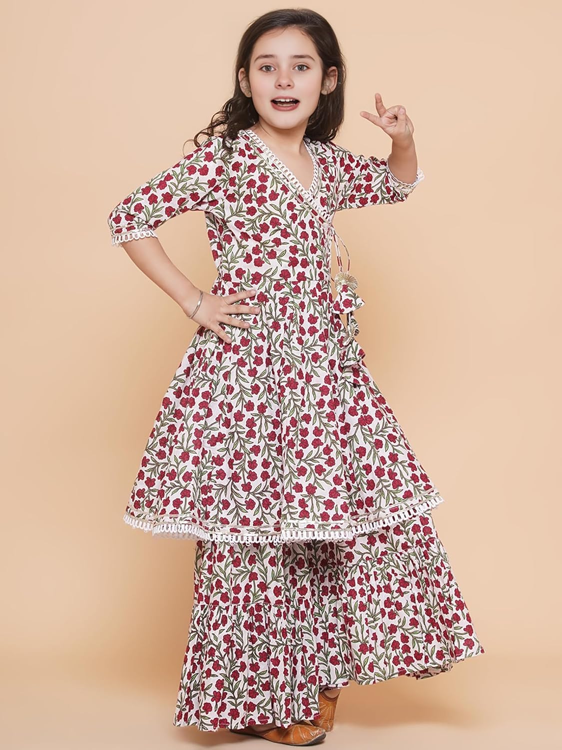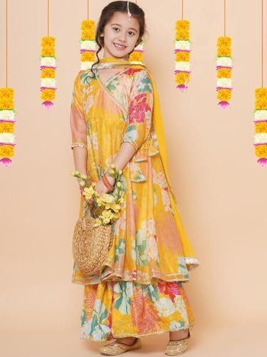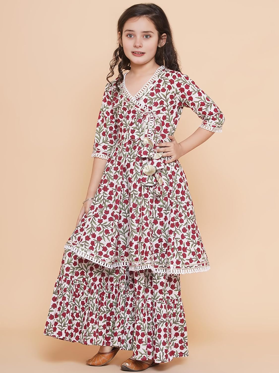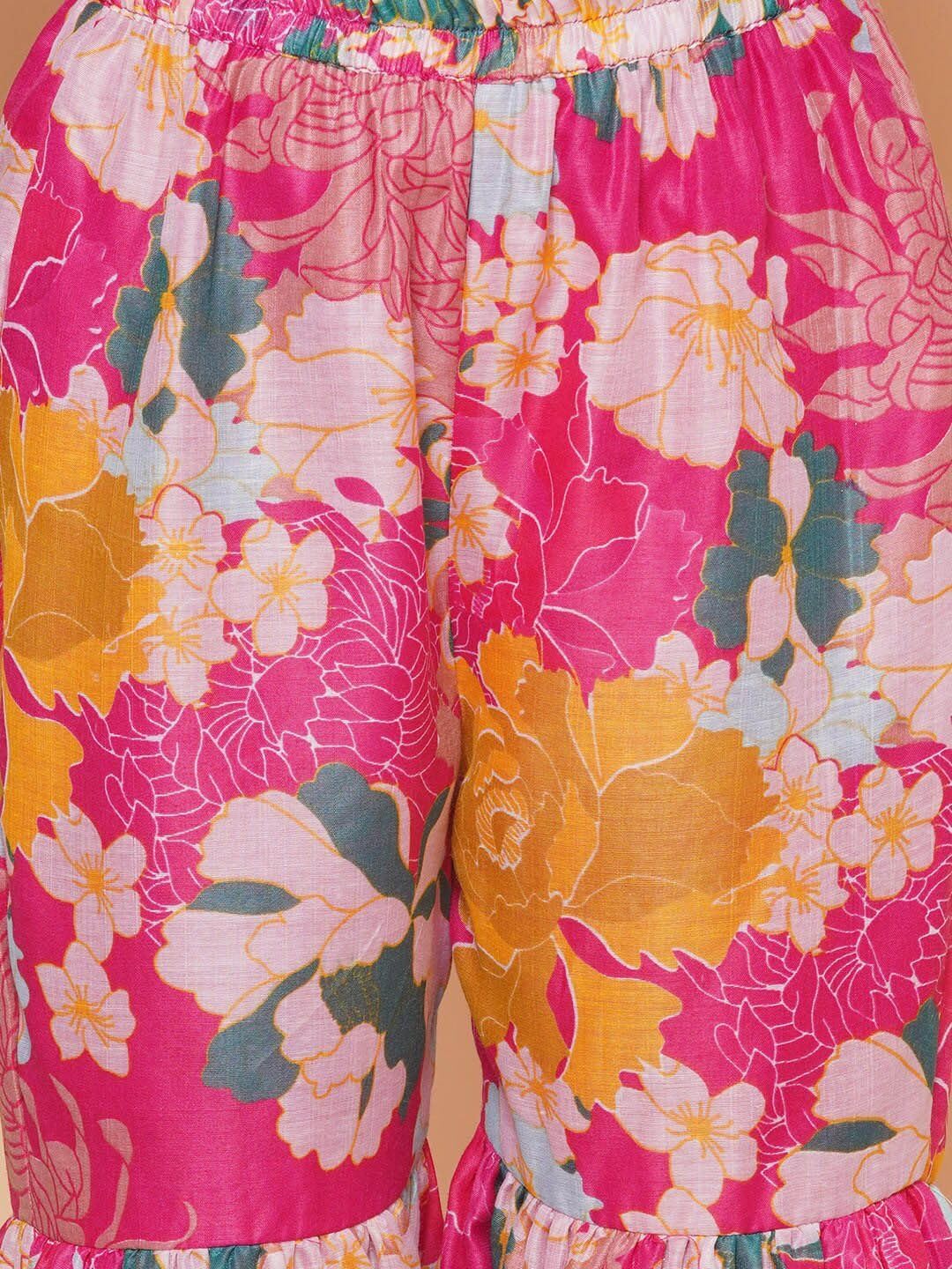 Naixa Girls Rayon Fabric Floral Printed 3/4 Sleeve Sharara Dress Set For All Occasion salwar suit