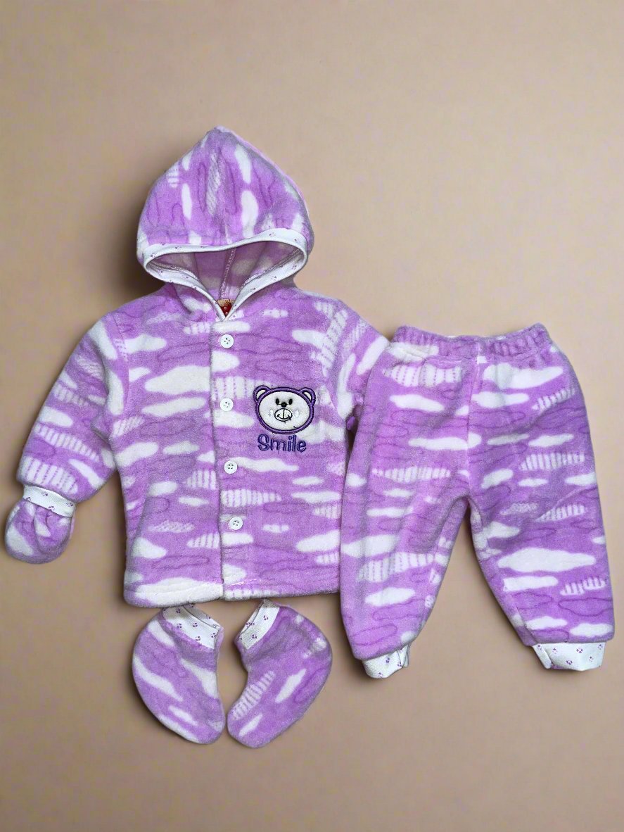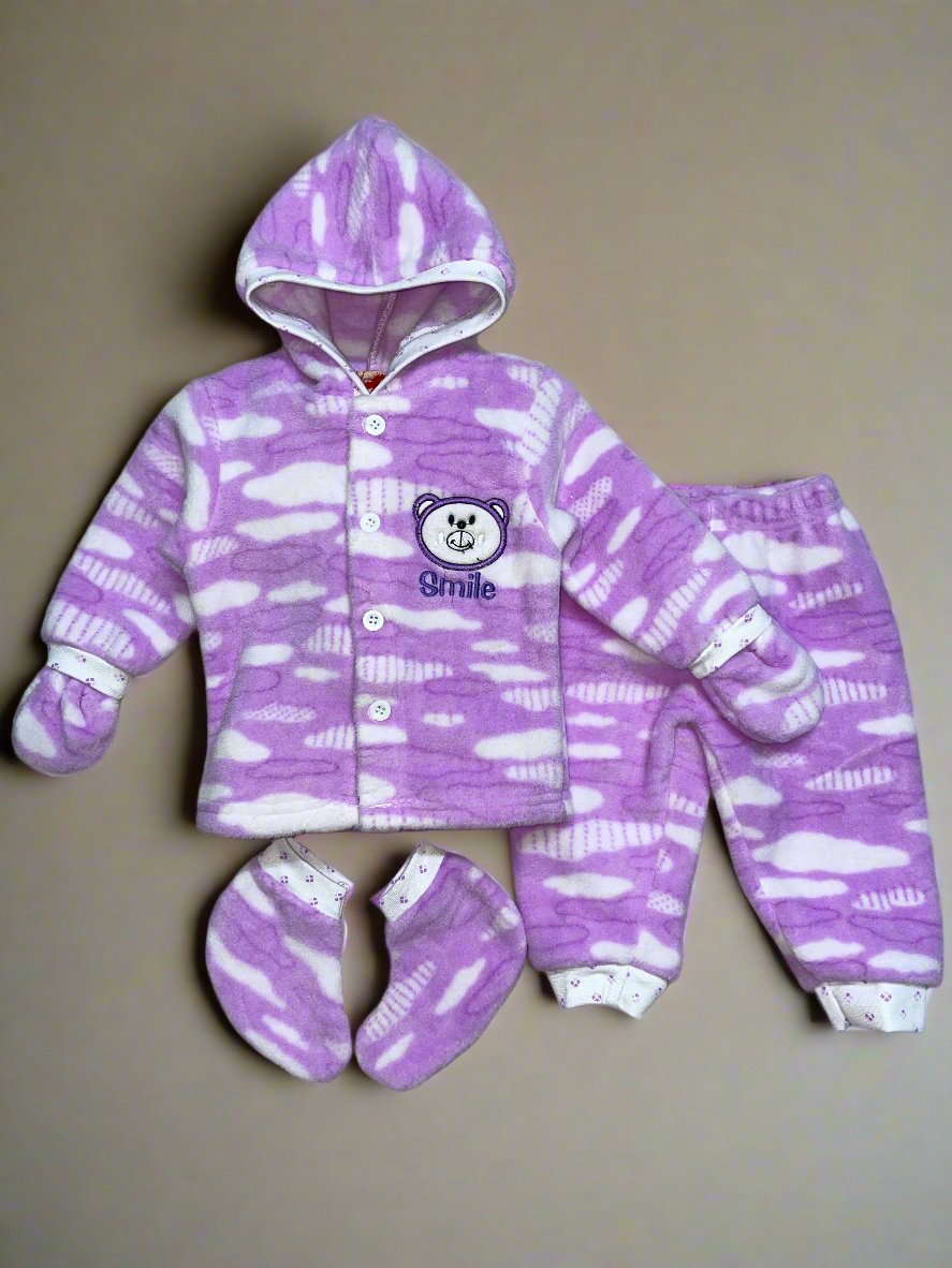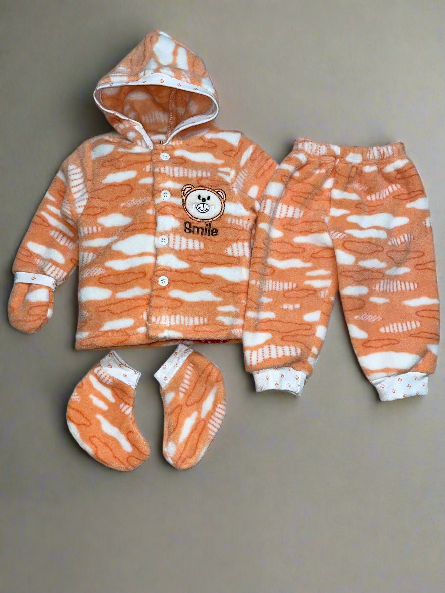 Newborn baby clothing set is essential for your little one. This specifically designed set includes a comfy hooded top, mittens, socks, and pajamas, ensuring your baby stays warm and cozy during their first months. Made from soft, breathable fabrics, it’s perfect for delicate newborn skin.
