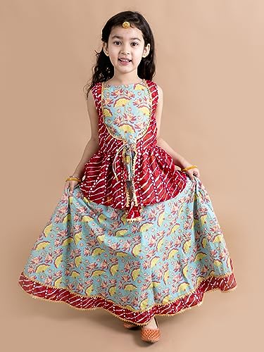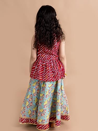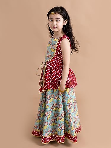 Pspeaches Girls Cotton Printed Sequinned Ready To Wear Readymade Lehenga Choli (Green)