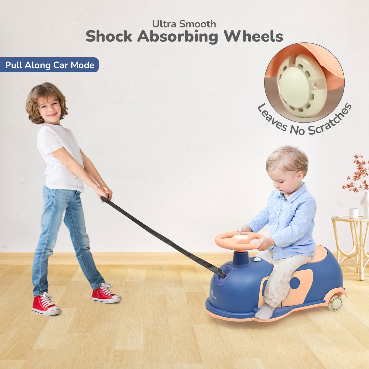 R for Rabbit Iya Iya Caravan 3 in 1 Kids Swing Car, Push & Pull Ride-On with Scratch Free PU LED Wheels & ABEC7 Bearing, Baby Twister Magic Car for 2+ Years Boys & Girls, Upto 75 Kgs (Blue Peach)