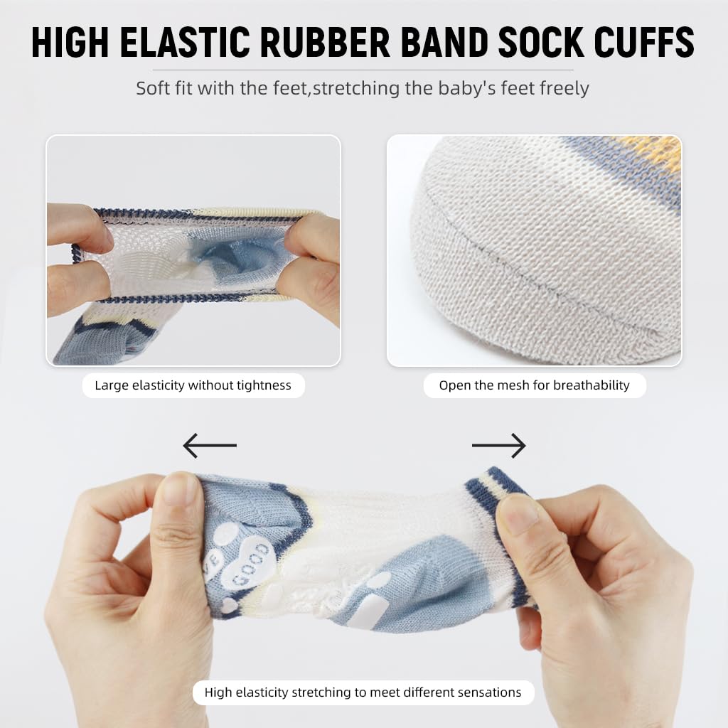 - COMFORTABLE TO WEAR: The elastic band on these non slip grip ankle socks is designed to gently wrap around your baby's ankle, providing a secure fit without causing any discomfort. The gentle nature of the elastic ensures that it can snug fit on baby's foot without causing any irritations and discomfort.