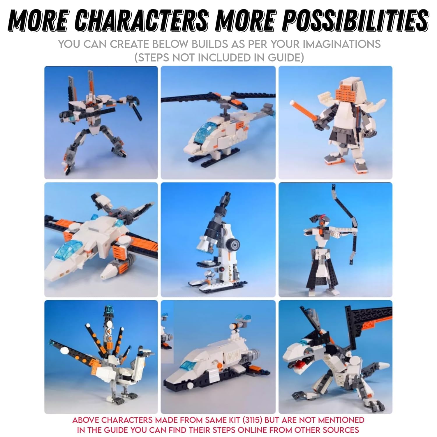 • ✔BUILD 36 MODELS: - From futuristic robots to sleek jets and robust ships, this set allows for a diverse range of creations.V