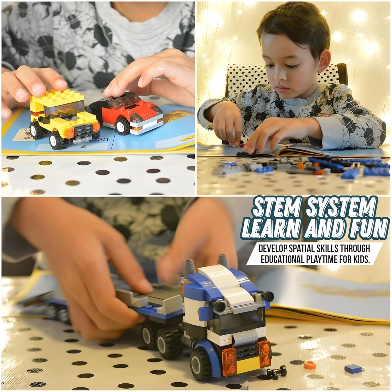 • ✔EDUCATION AND DEVELOPMENTAL BENEFITS: - Enhances Creativity Encourages imaginative play and design thinking. Also Improves Skills Develops problem-solving, spatial reasoning, and fine motor abilities.